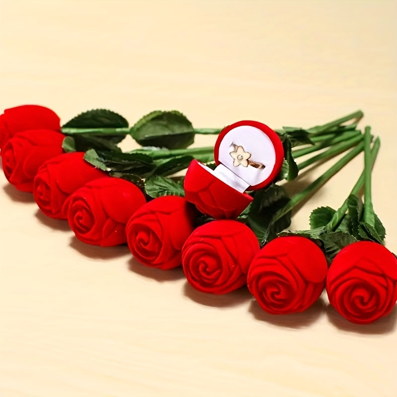 Elegant rose-themed ring box for weddings and proposals, sure to add a touch of romance to your special moment.