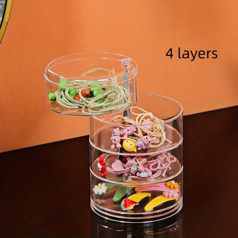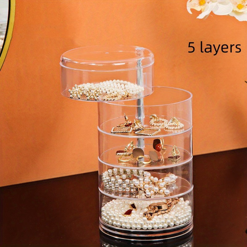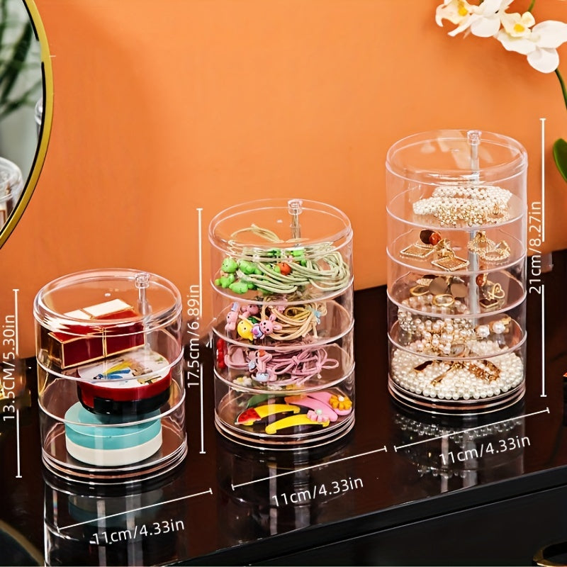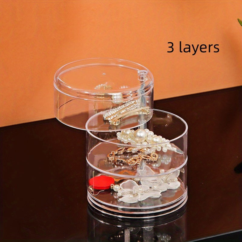 Keep your jewelry safe and organized with this transparent layer rotary table top storage box. Prevent dust buildup and store your cosmetics neatly.