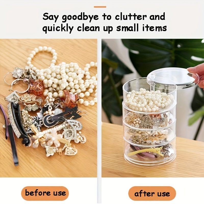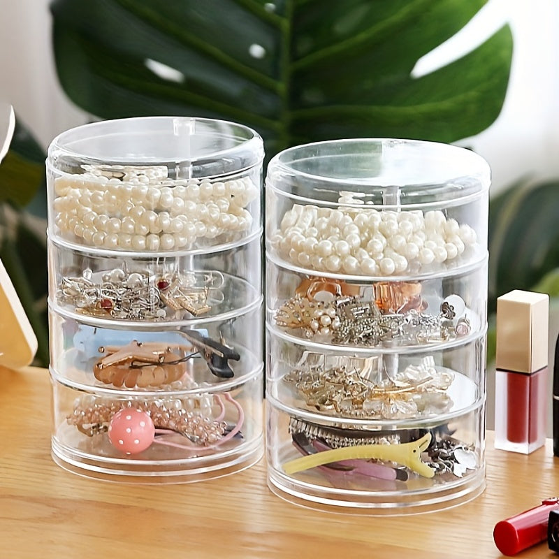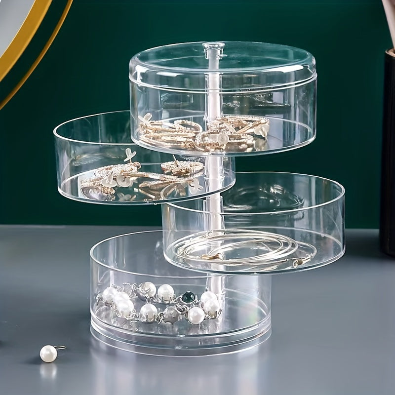 Keep your jewelry organized with this rotatable storage box featuring a transparent design. Perfect for storing small items like hand jewelry and hair clips.