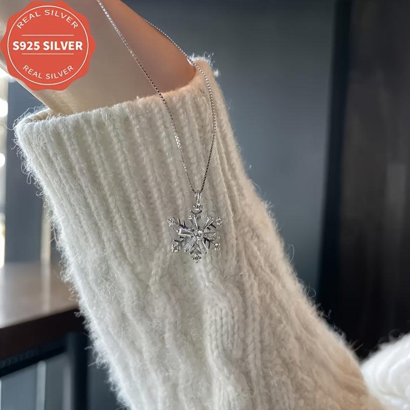 Elegant collarbone chain for women that is hypoallergenic and features a rotatable snowflake design.