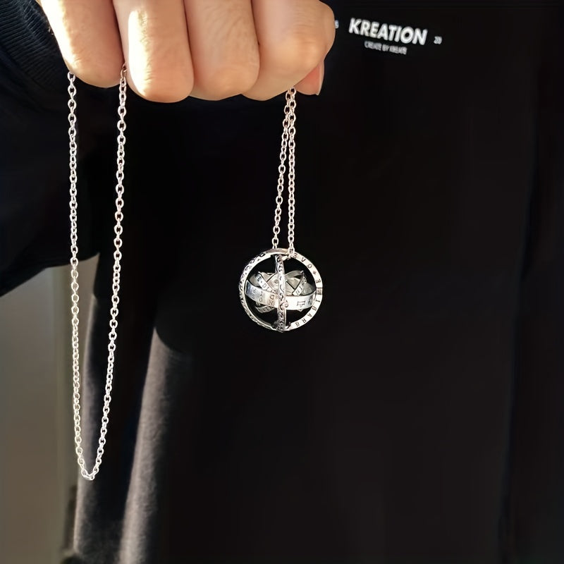 This unique pendant necklace features a rotating revolving astronomical ball design, perfect for men.