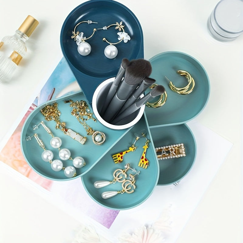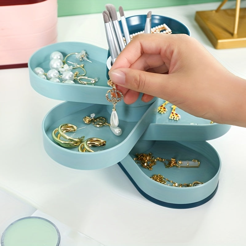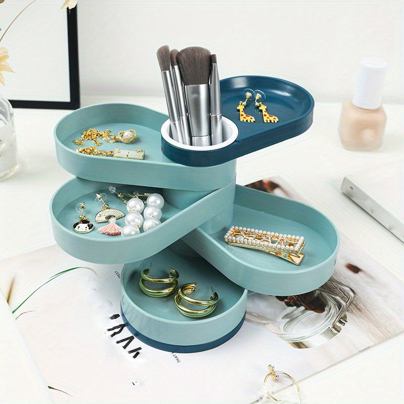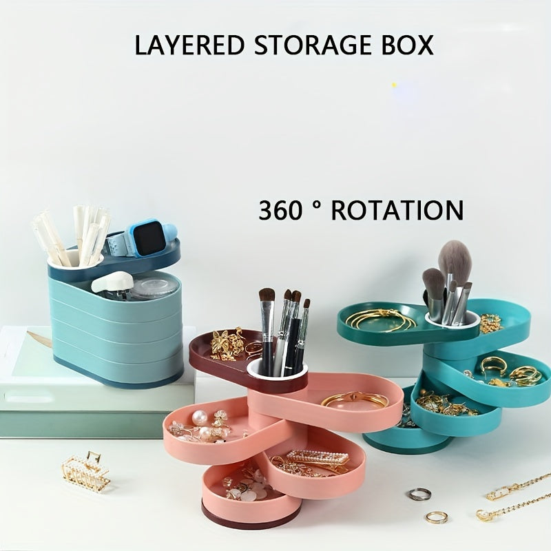 Keep your jewelry organized with this rotating storage box, ideal for earrings, headwear, necklaces, and rings. The large capacity design offers multiple layers for efficient storage.