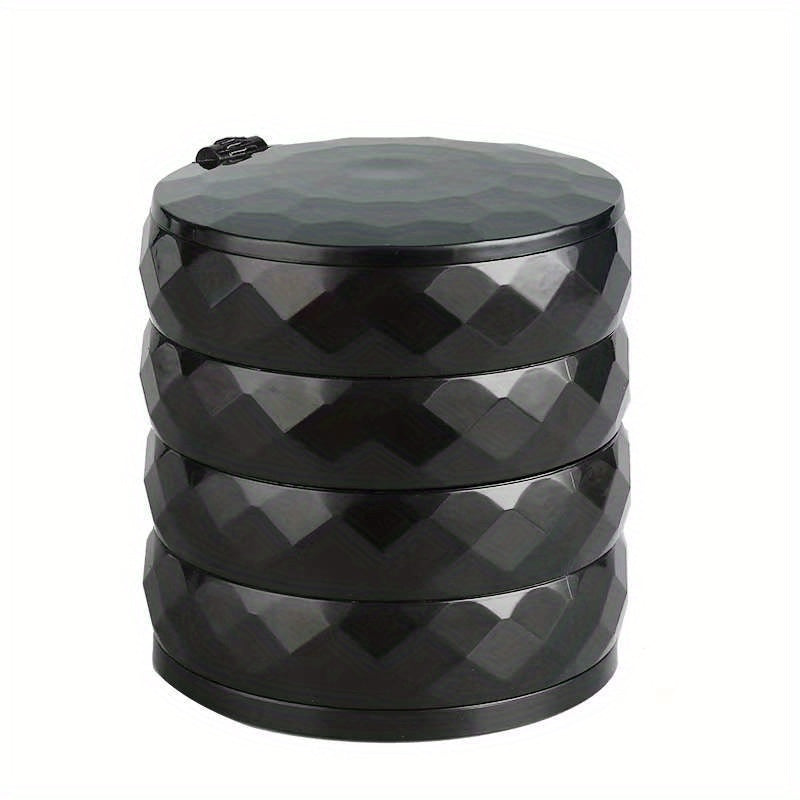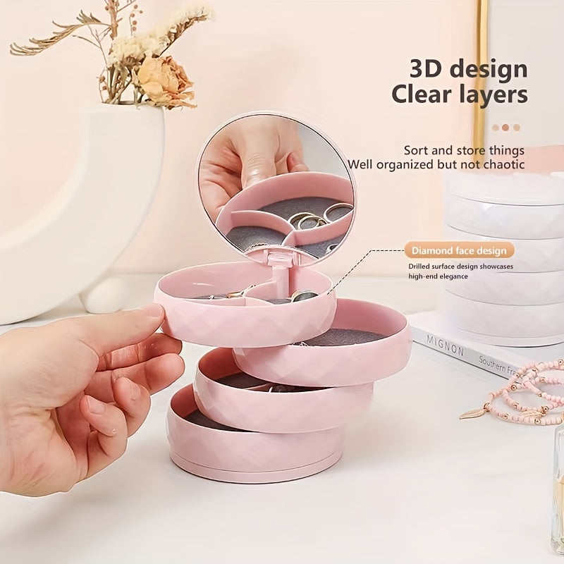 Keep your jewelry organized and easy to access with this multi-layered rotating jewelry box. Perfect for storing necklaces, earrings, and hair accessories.