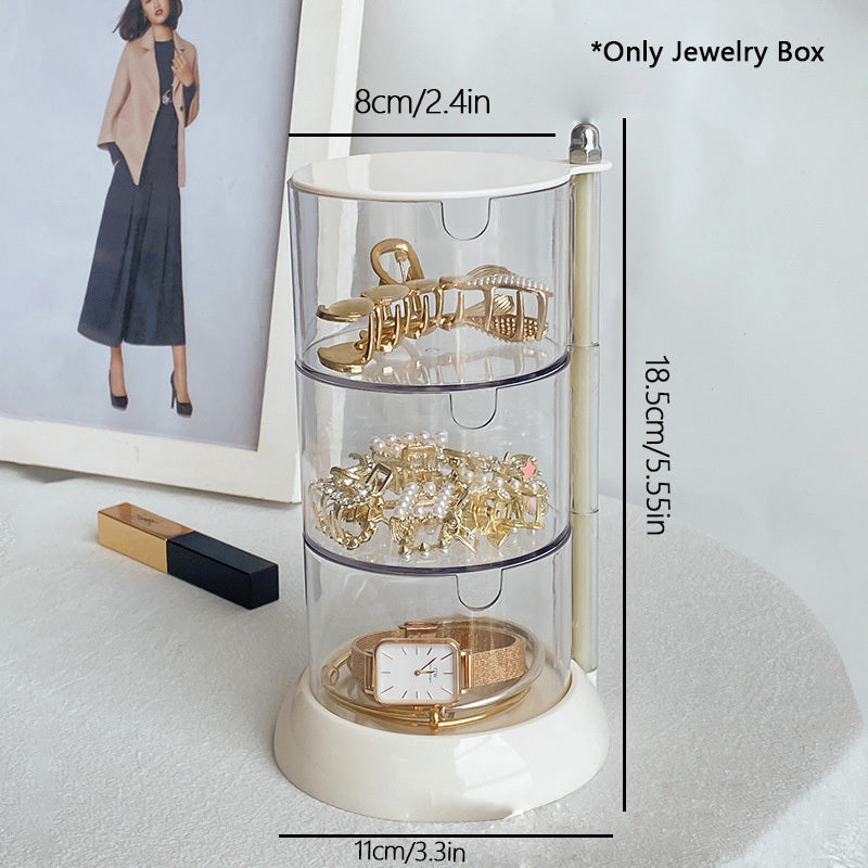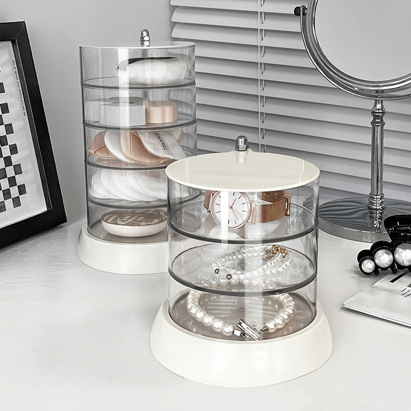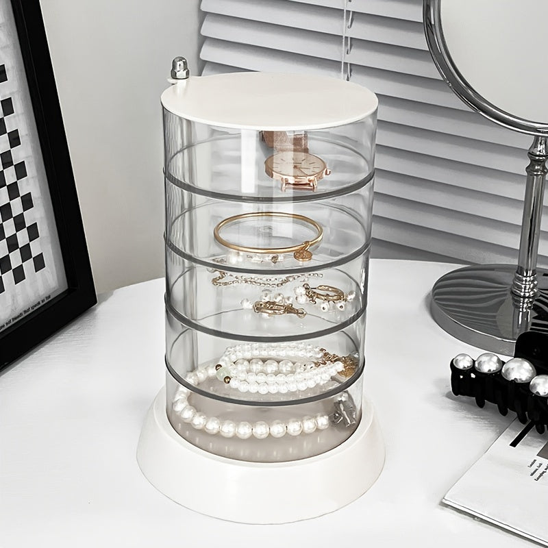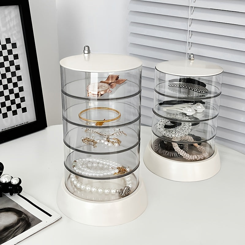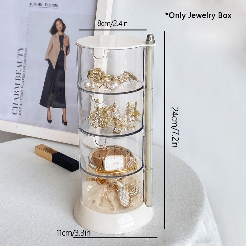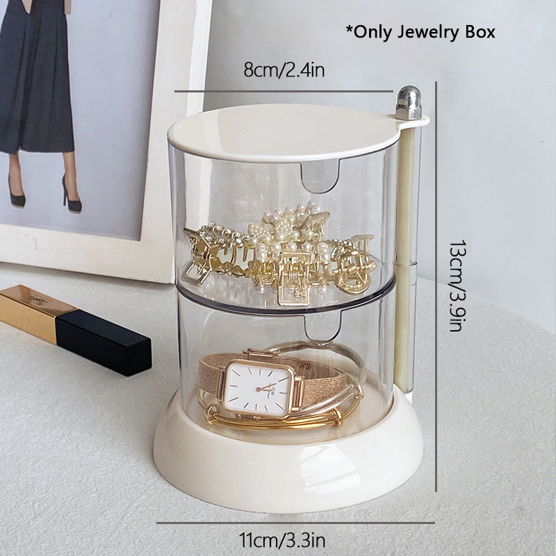 This rotating jewelry storage box provides a clear display for your earrings, necklaces, and other accessories. Keep your dresser organized with this stylish desktop holder.