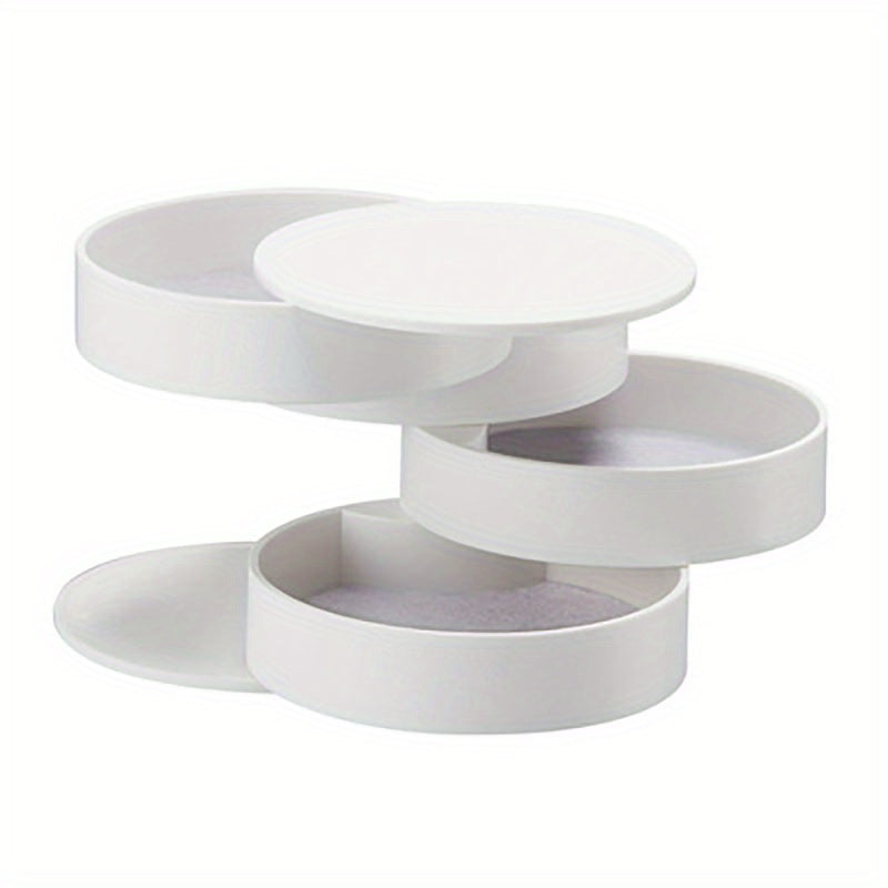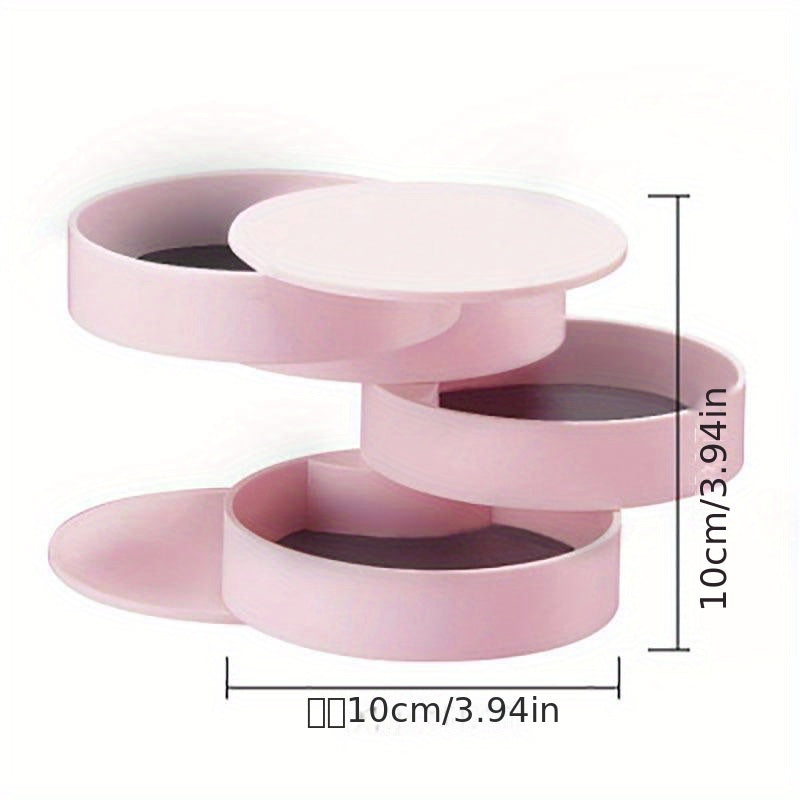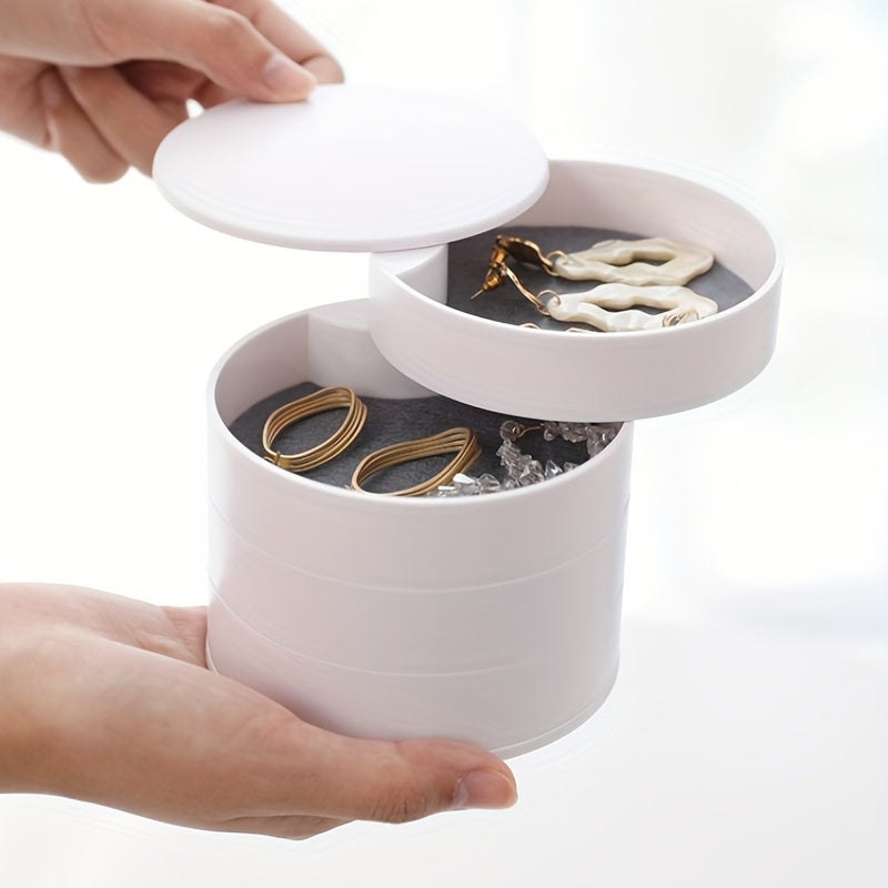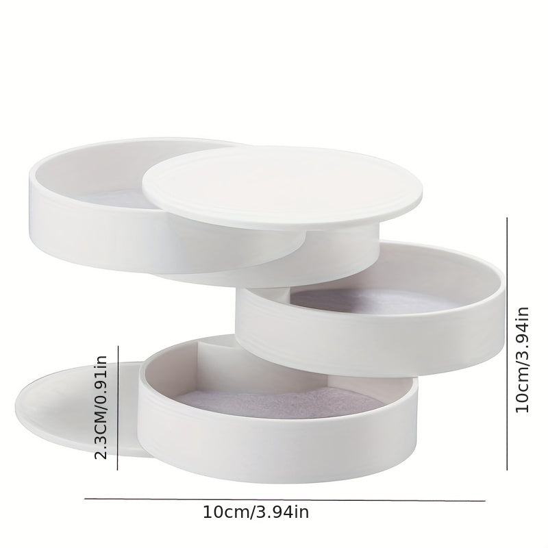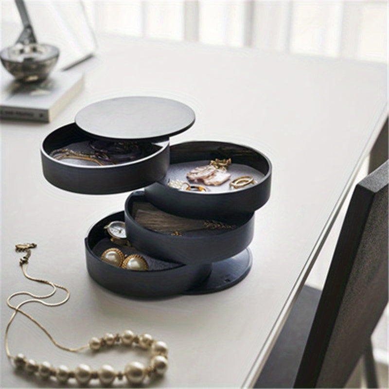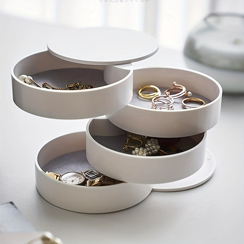 Keep your jewelry organized and dust-free with this convenient rotating storage box. It features a dustproof layer to protect your pieces.