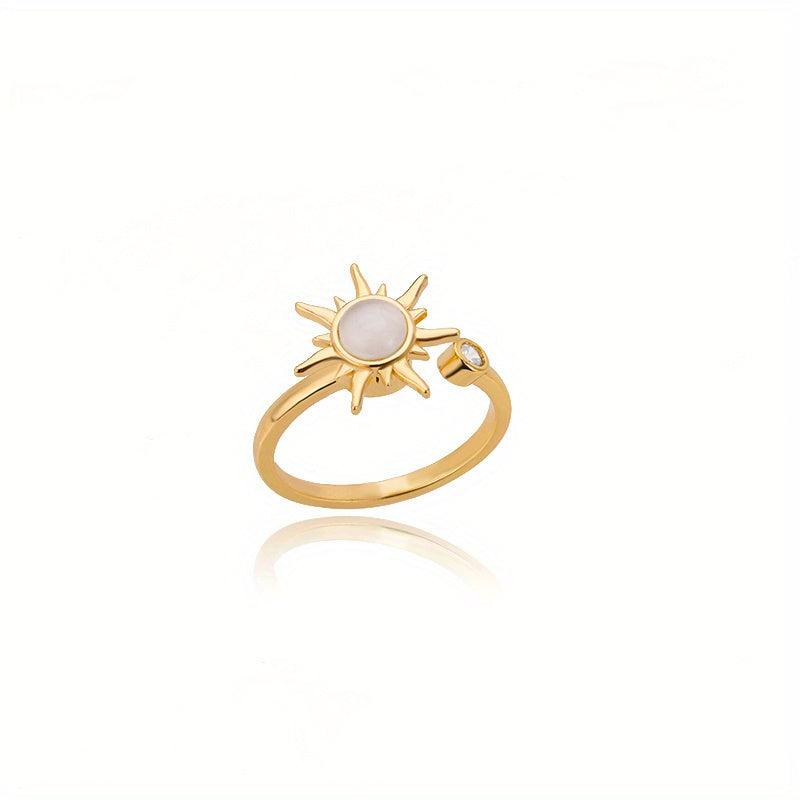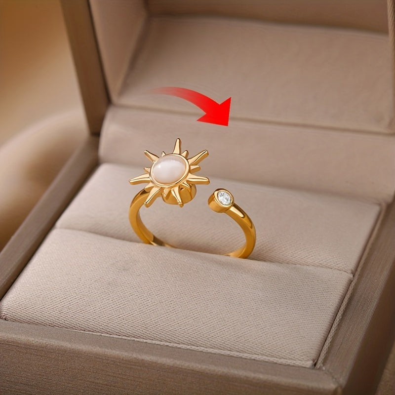 This stunning rotating sun opal ring is a perfect jewelry gift for women. Made of stainless steel, this adjustable ring features a charming design with a beautiful opal centerpiece that catches the light. Ideal for everyday wear or special occasions.