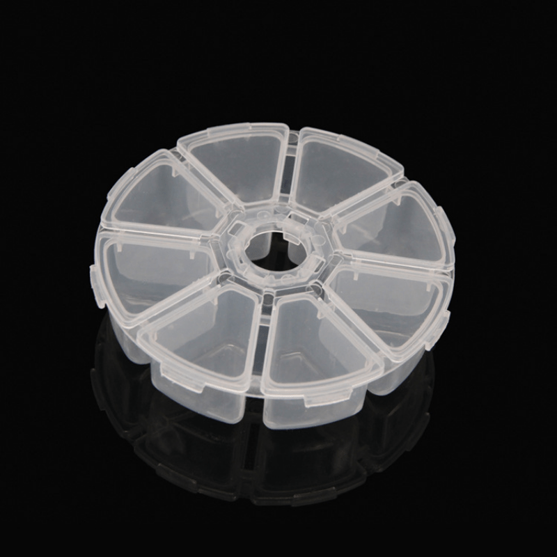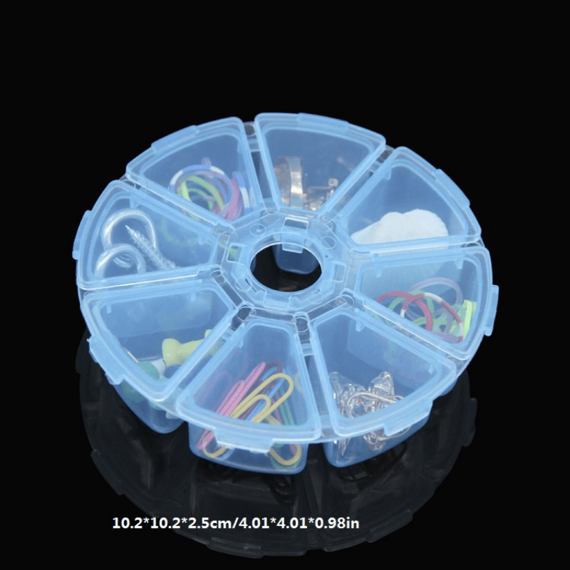 Organize your jewelry and small items with this round plastic box. Perfect for storing beads, hair pins, and mobile phone accessories.