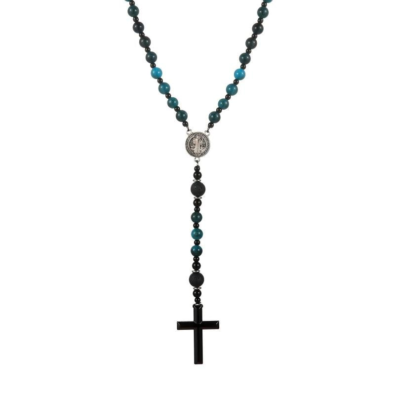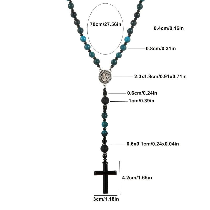 Elegant round bead cross pendant necklace suitable for men and women. This Saint Benedict necklace is perfect for any holiday gift.