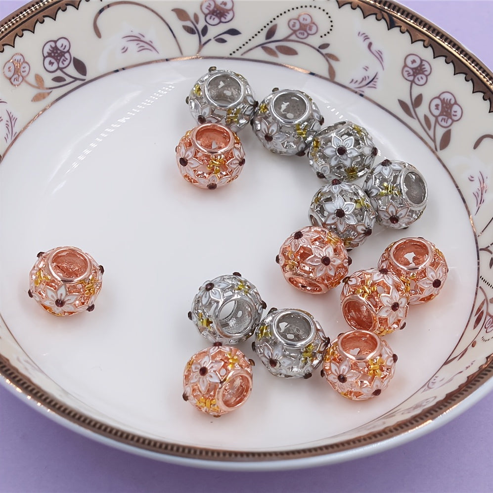 Create stunning bracelets with these silver and golden round flower beads that fit charms bracelets. Perfect for DIY jewelry projects for women.