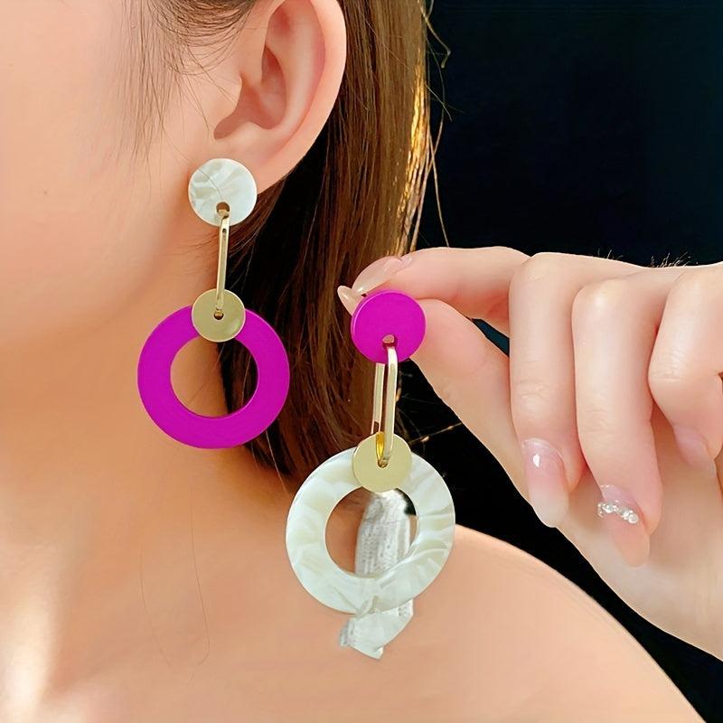 Add a touch of personality and sensation to your style with these unique round ring asymmetric earrings. Perfect for women who love to stand out in the crowd.