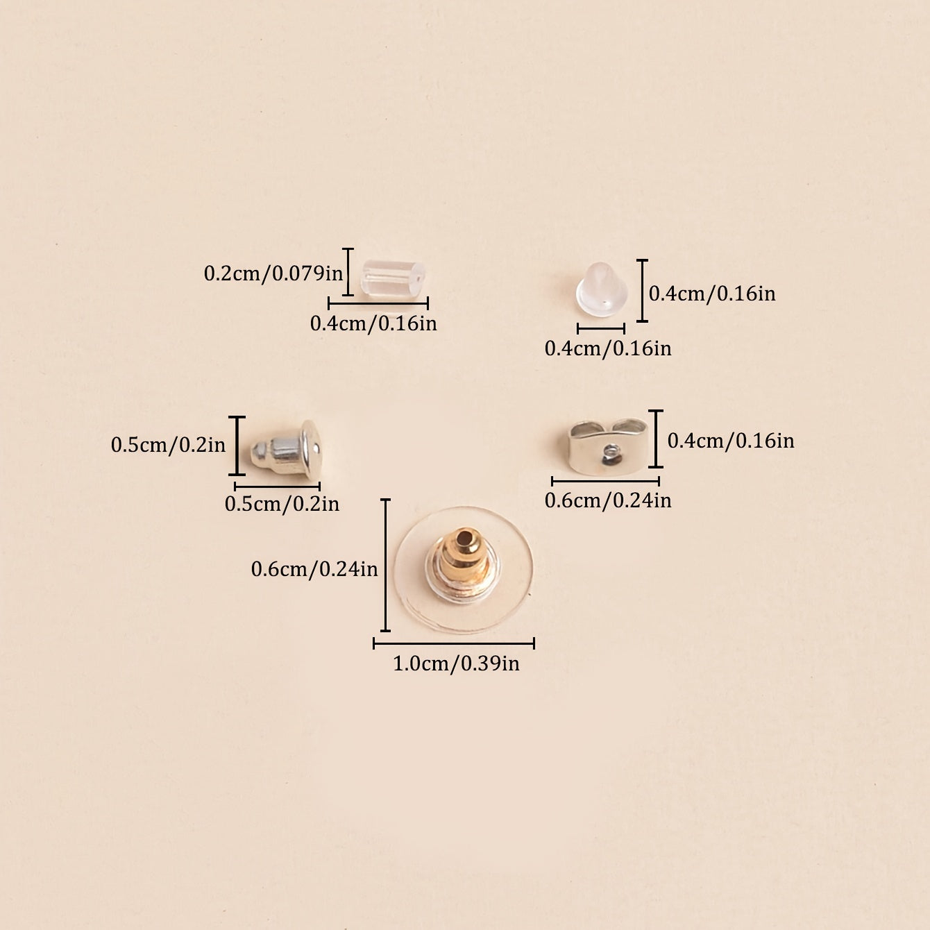 This set of rubber ear backs stoppers are essential supplies for creating artificial jewelry. Ideal for making stud earrings and other jewelry pieces.