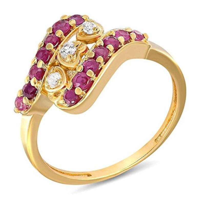 Elegant finger ring featuring a ruby and CZ stones with 24K gold plating.
