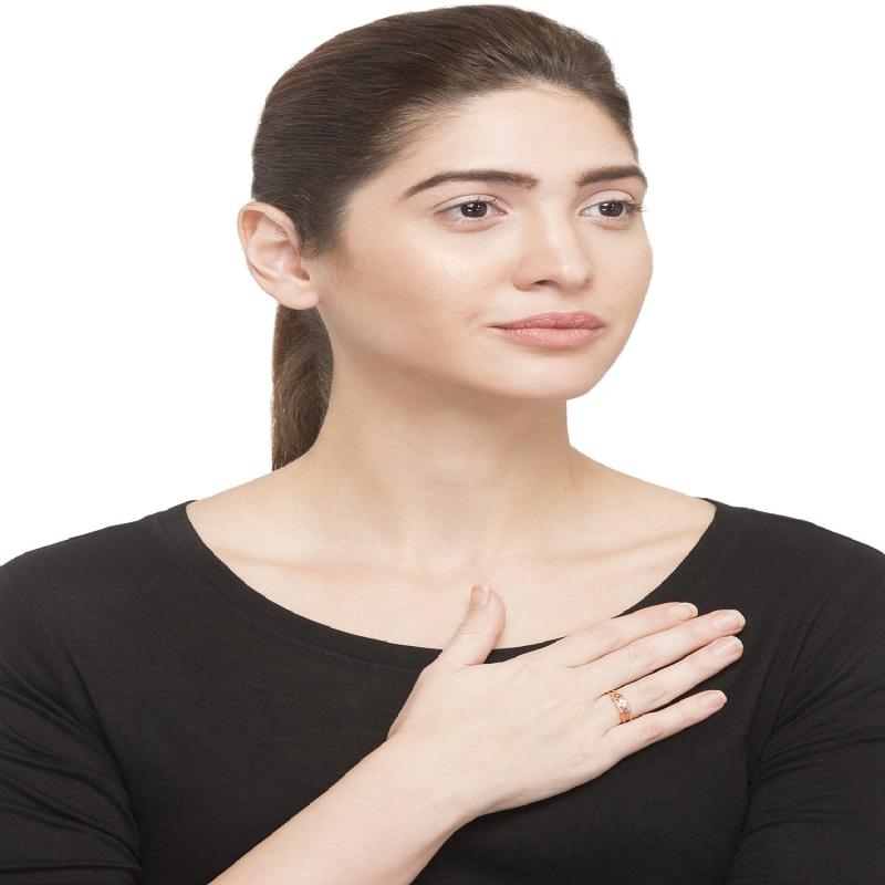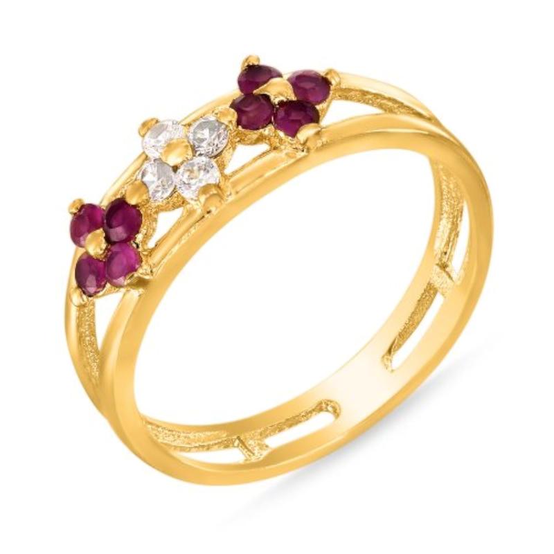 Elegant finger ring featuring a stunning Ruby & CZ design plated in 24K gold.