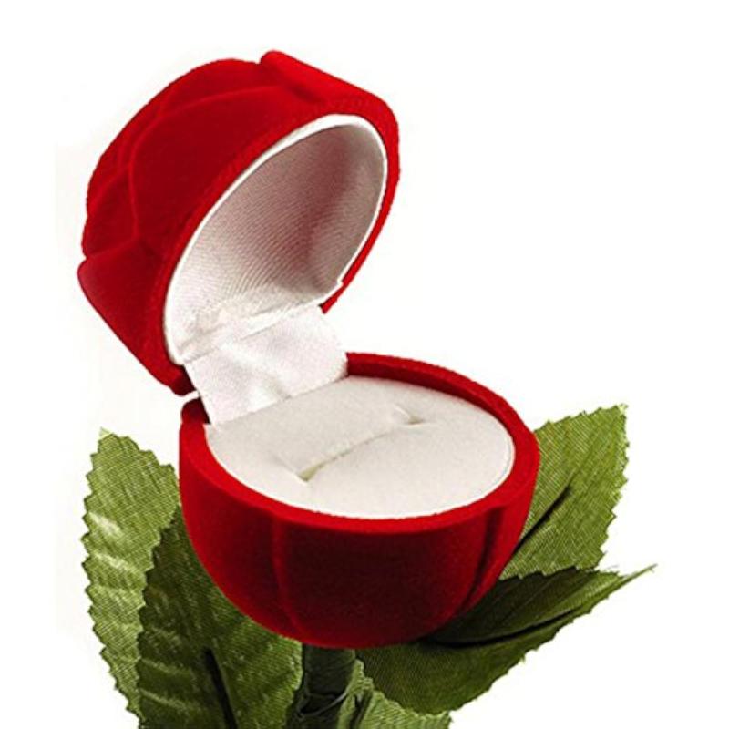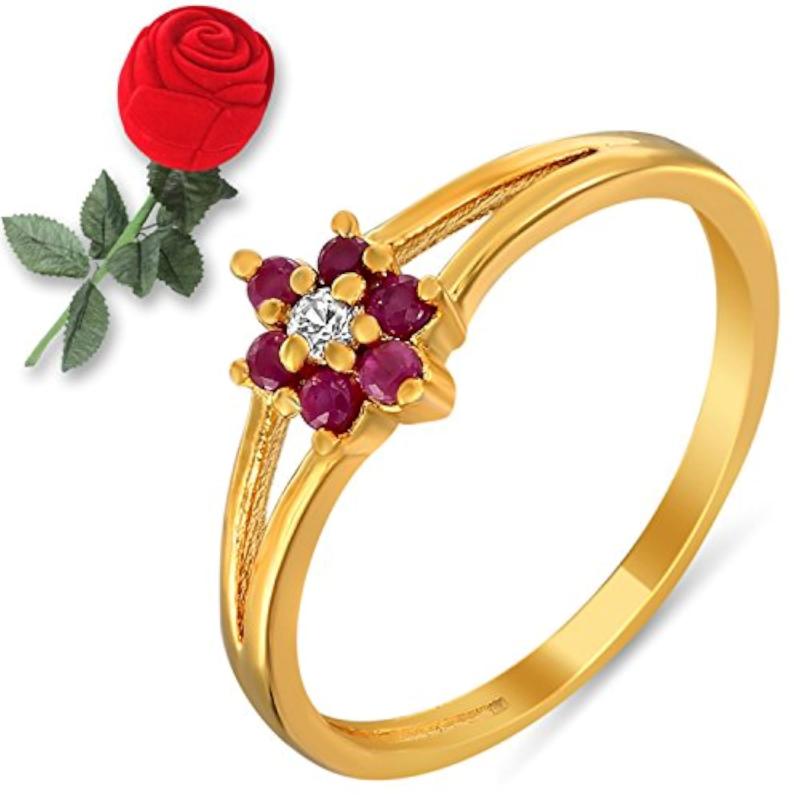 Elegant rose-shaped box finger ring featuring a vibrant ruby and sparkling CZ stones. Perfect for adding a touch of glamour to any outfit.