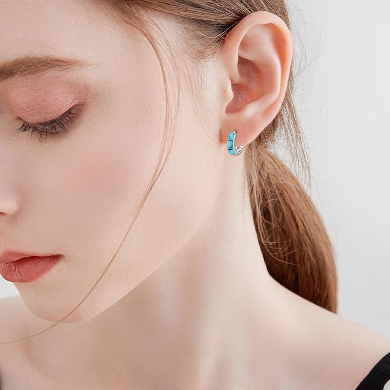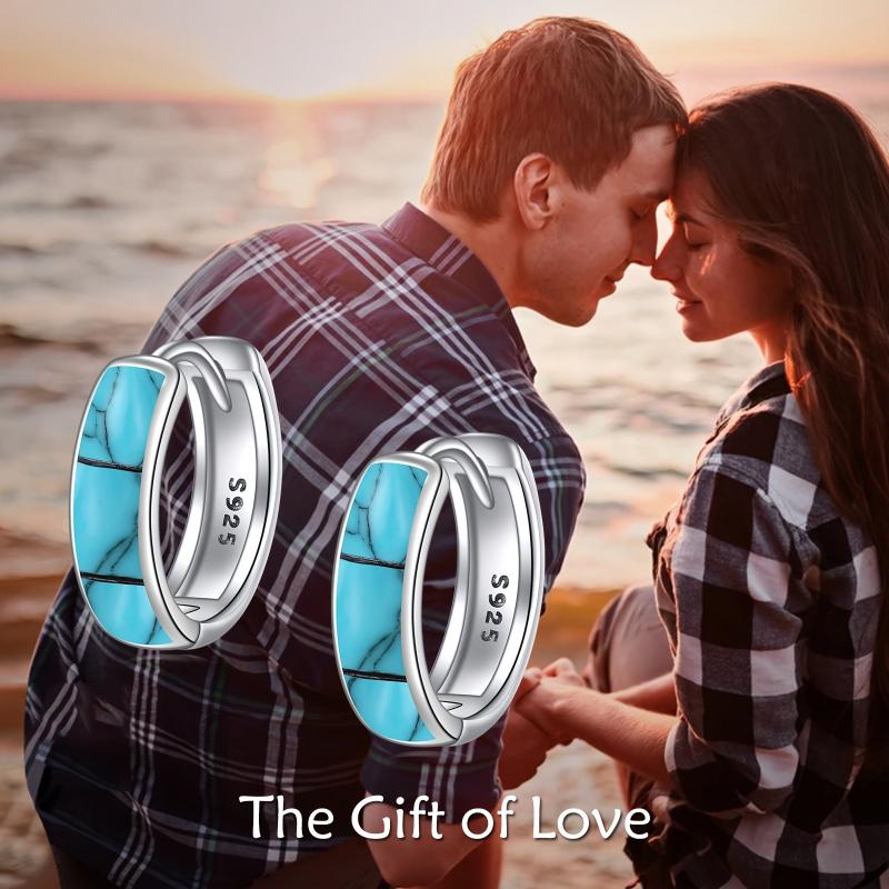 Add a touch of elegance with these sterling silver Celtic hoop earrings featuring synthetic turquoise. Perfect for everyday wear or special occasions.
