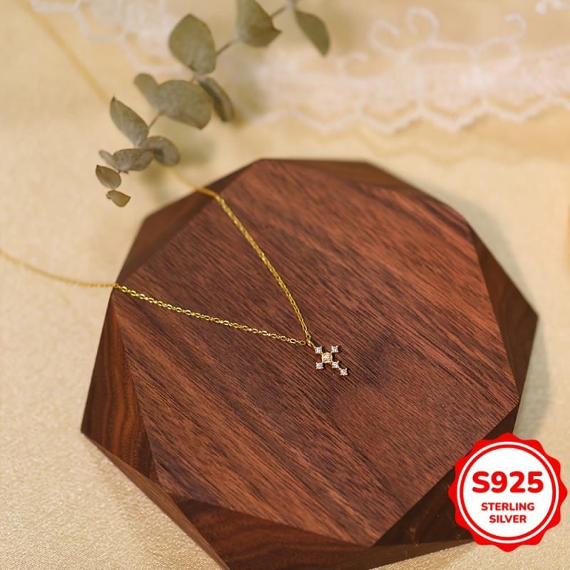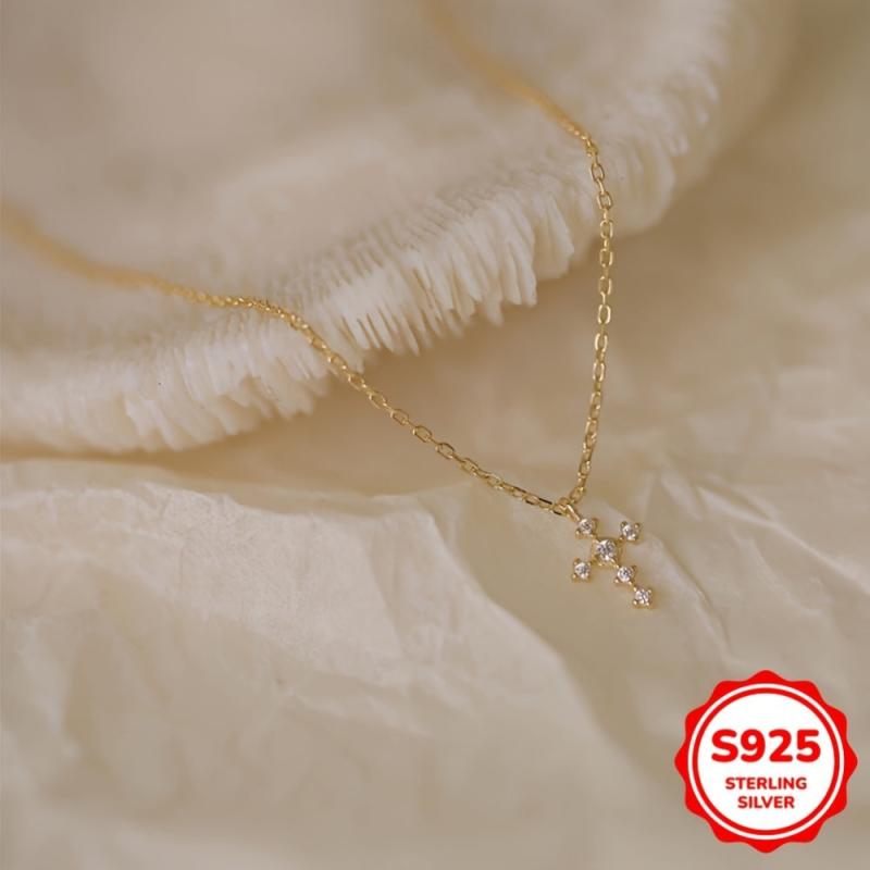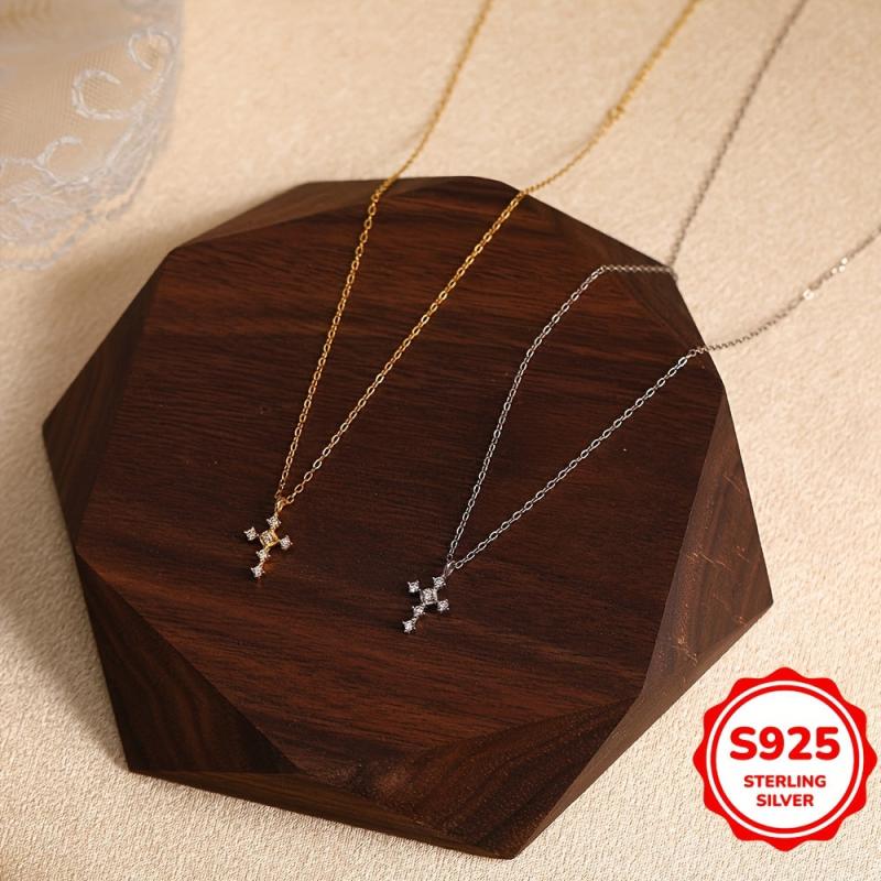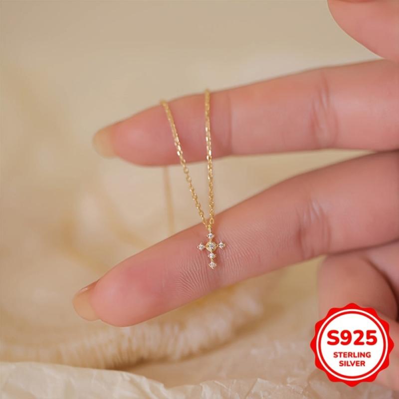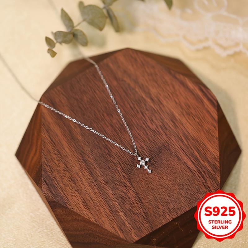 This S925 necklace features a stylish cross pendant, making it a fashionable accessory for women. Ideal for holidays, birthdays, parties, or as a Valentine's or Mother's Day gift.