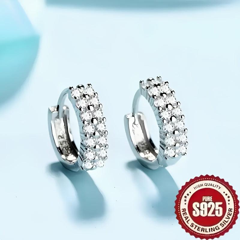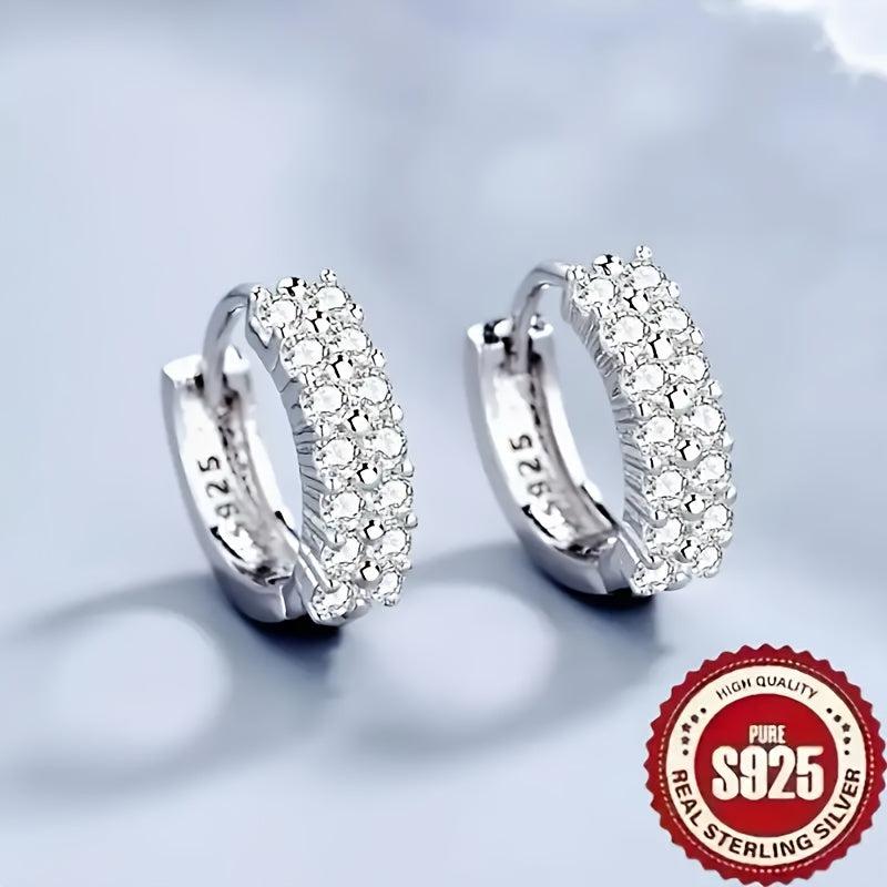 Elevate your style with these exquisite S925 silver earrings featuring a unique double layer design and heart-shaped mini zirconia stones.