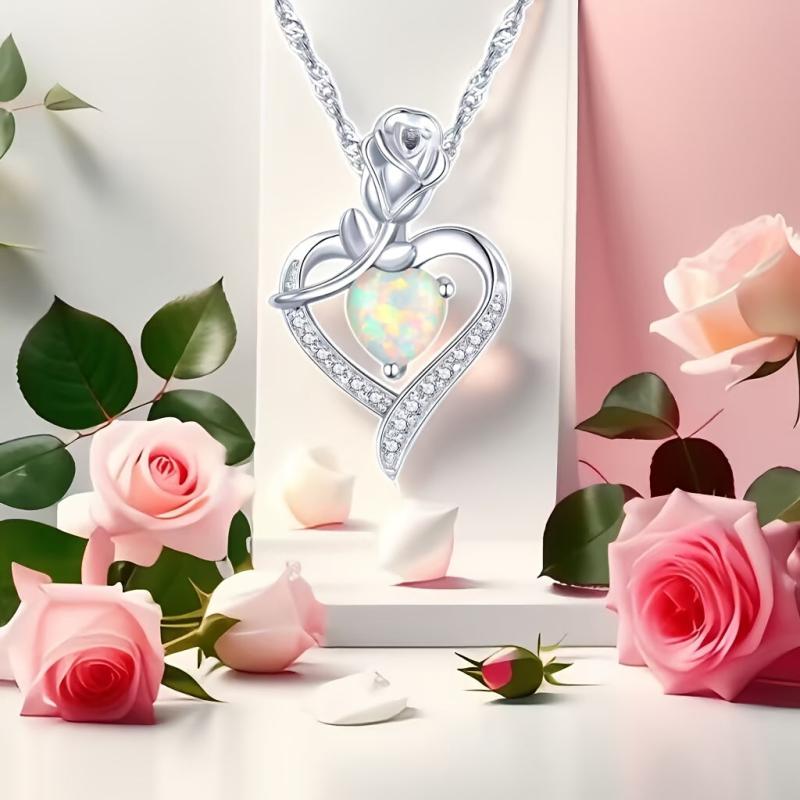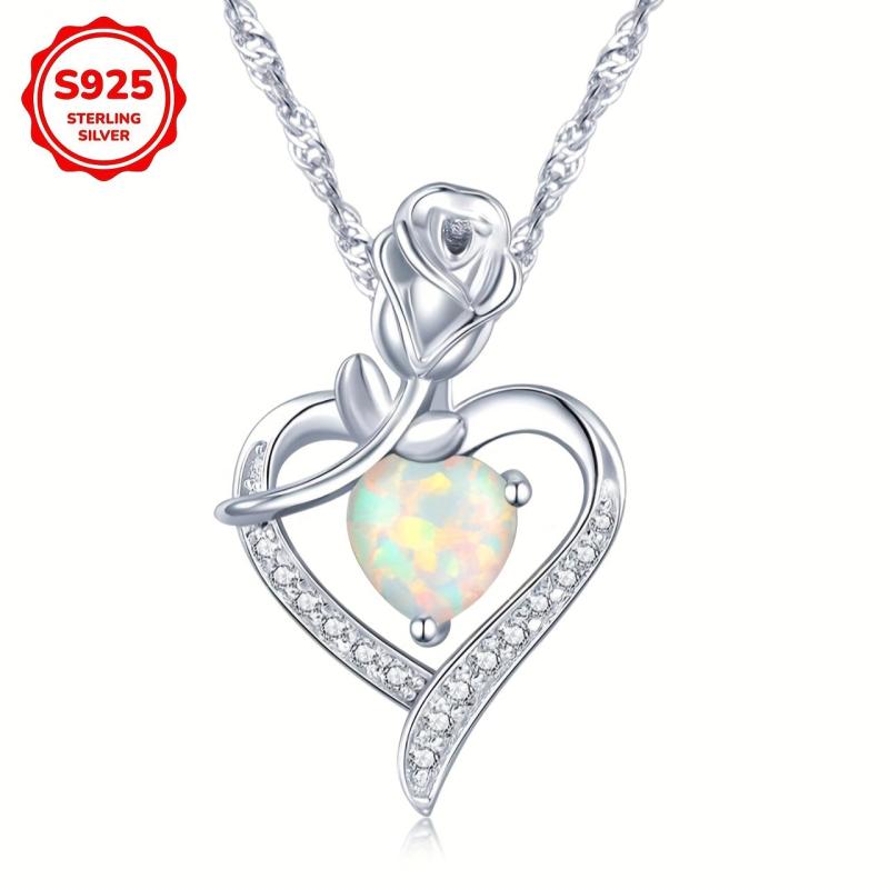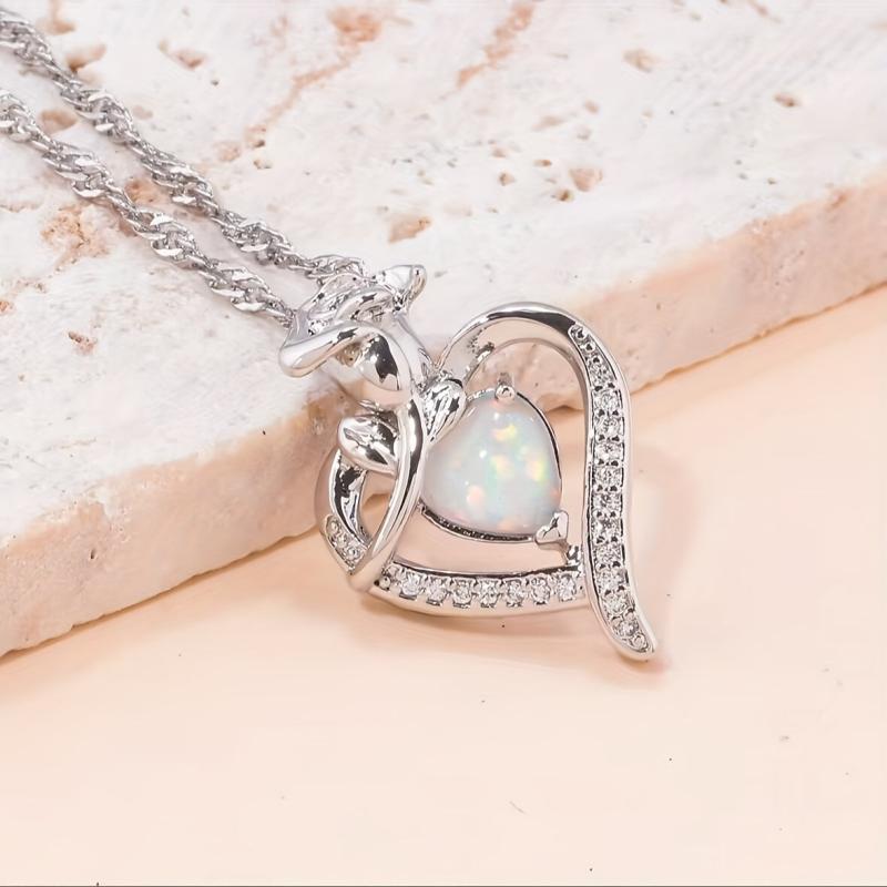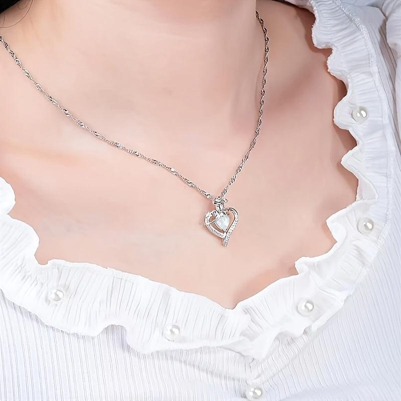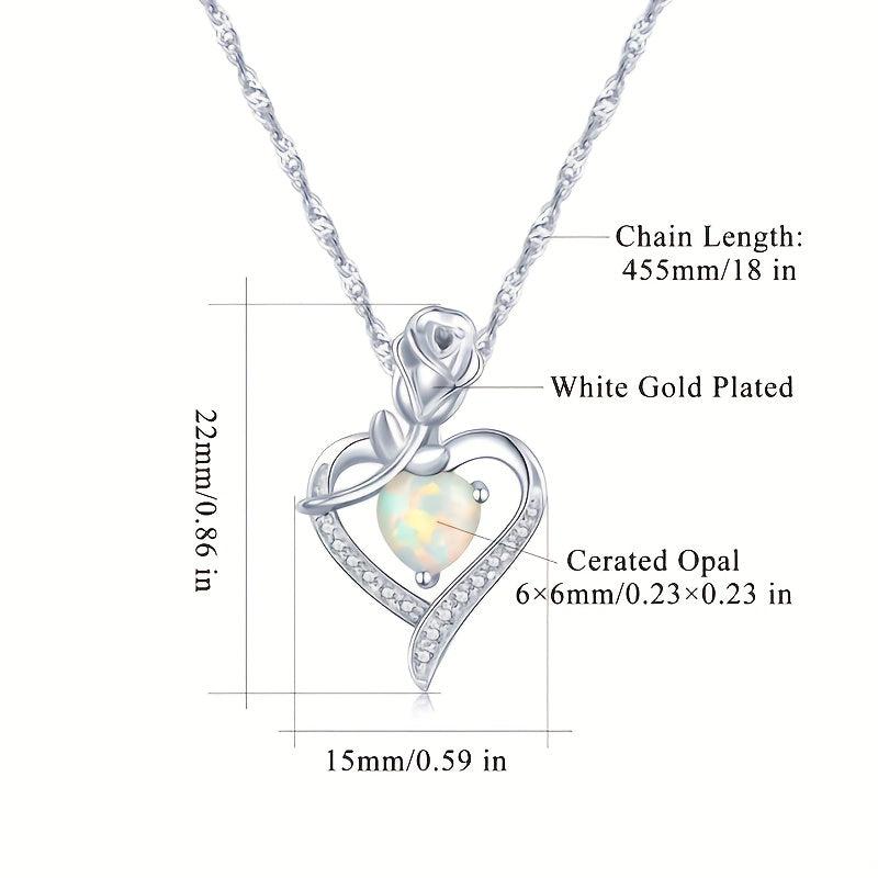 This stunning necklace features a heart-shaped pendant with synthetic opal and 5A cubic zirconia, perfect for gifting to your girlfriend.