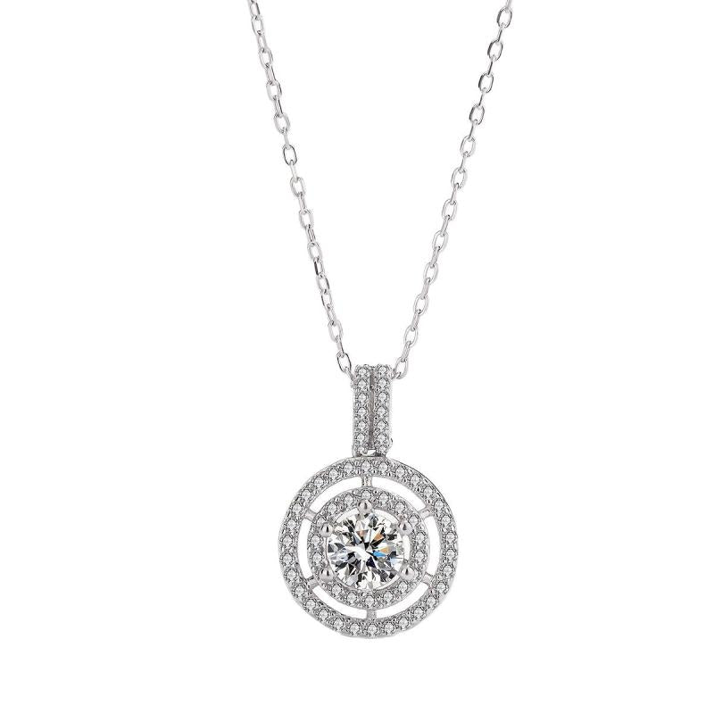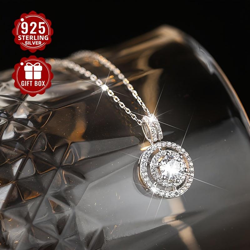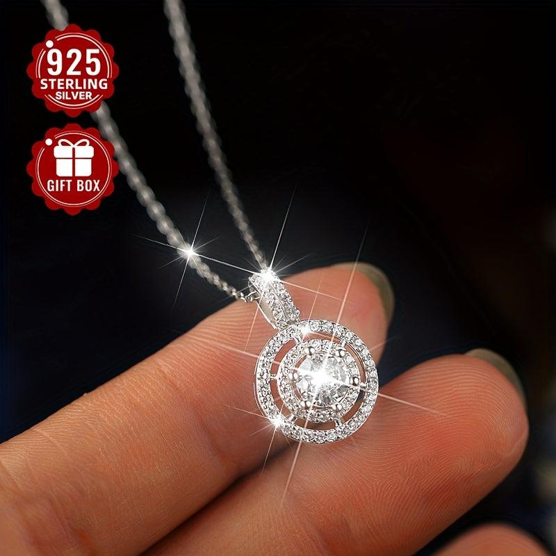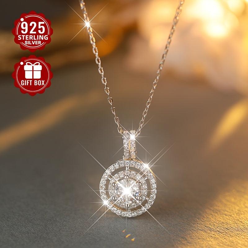 This S925 pendant necklace is a fashionable and elegant accessory suitable for banquets or casual outings. It features a round hollow design with synthetic zirconia inlays for a touch of sophistication.