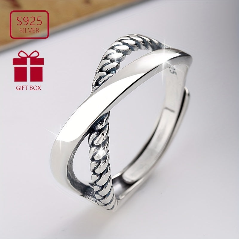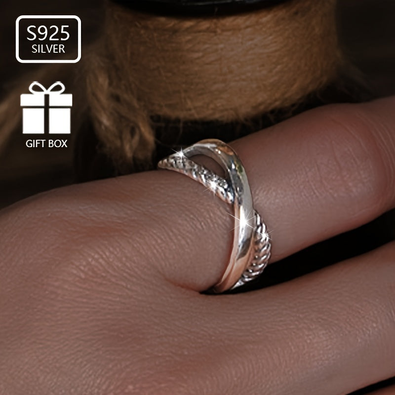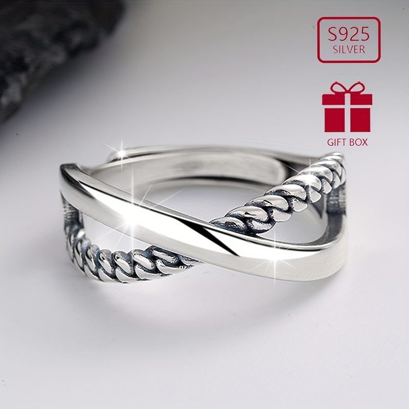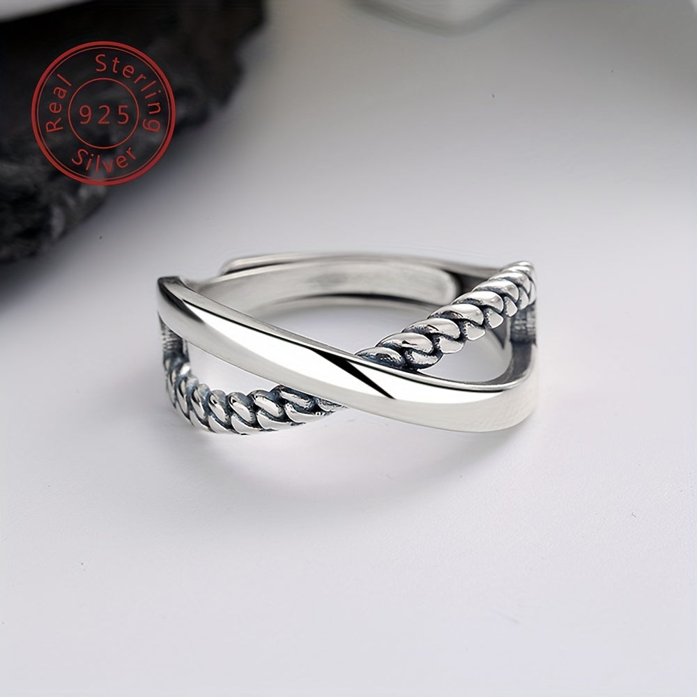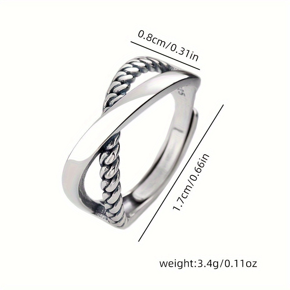Add a touch of style with this S925 pure silvery interlaced chain ring. Its fashionable and versatile design is perfect for daily wear, travel, and vacation. It weighs approximately 3.4g.