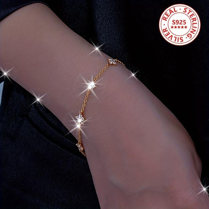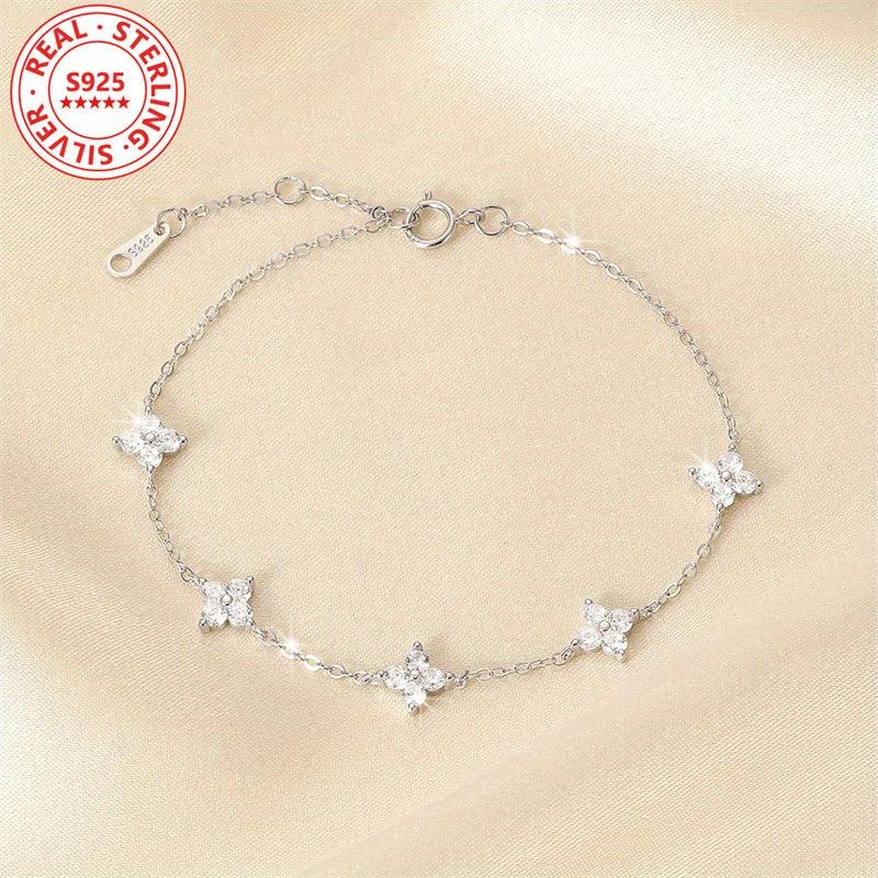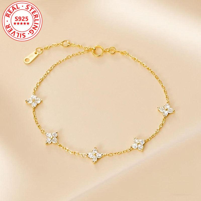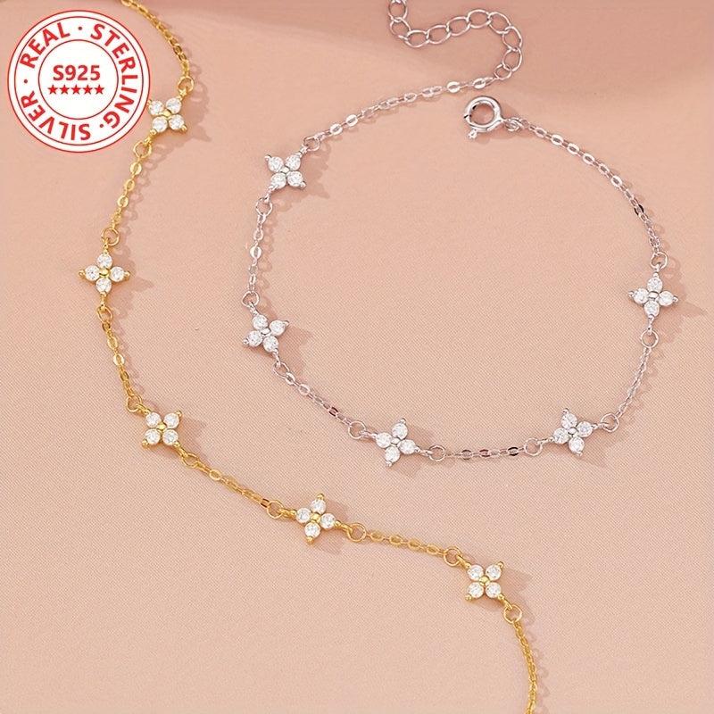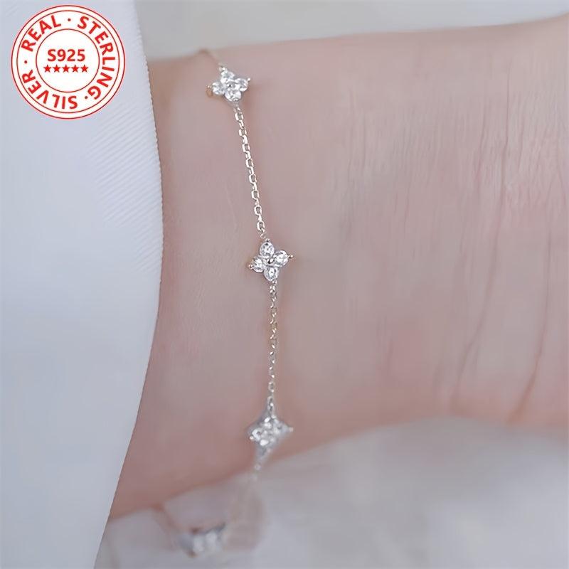 Elegant and minimalist, this bracelet features a sterling silver design with a clover and flower motif. Perfect for daily wear, it is lightweight and comfortable.