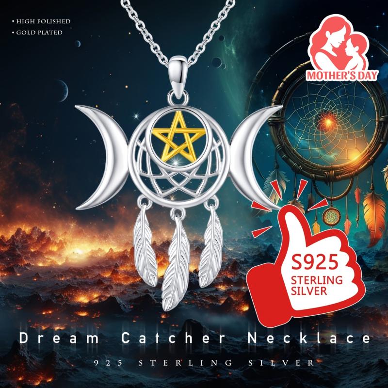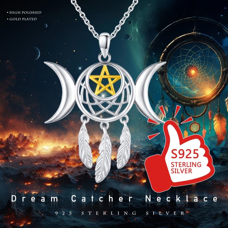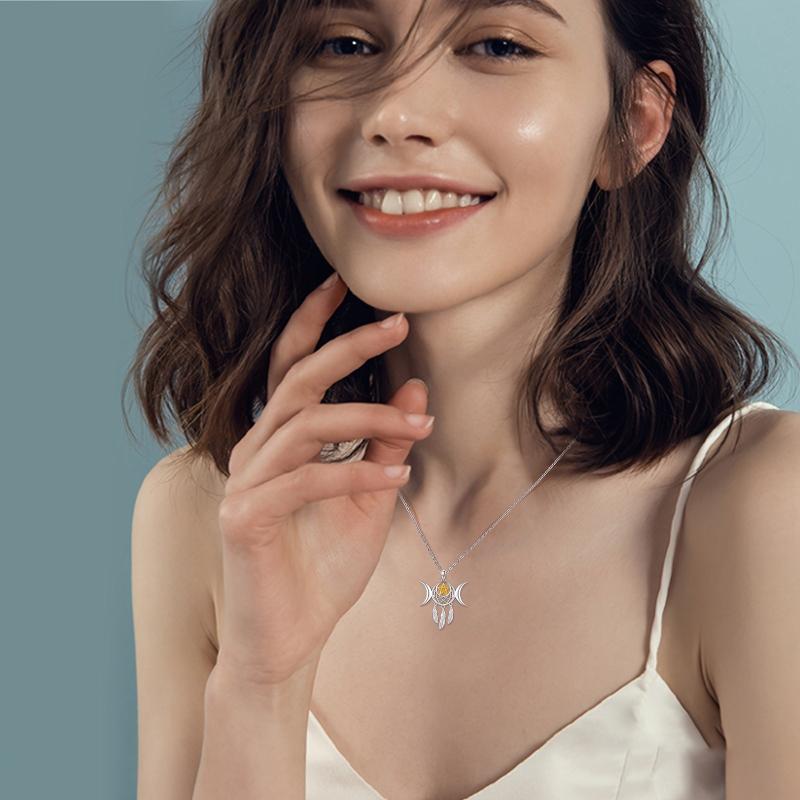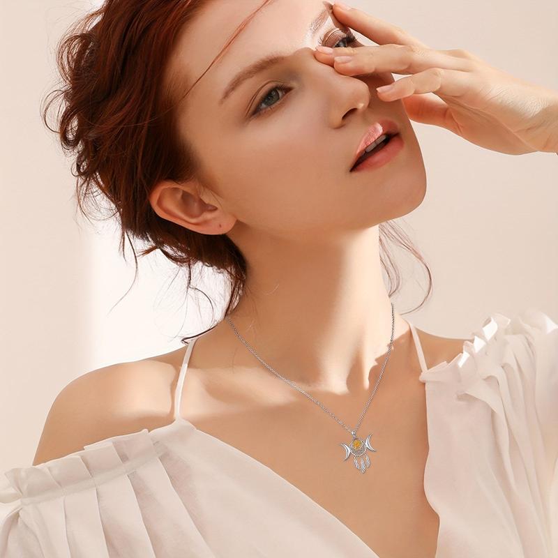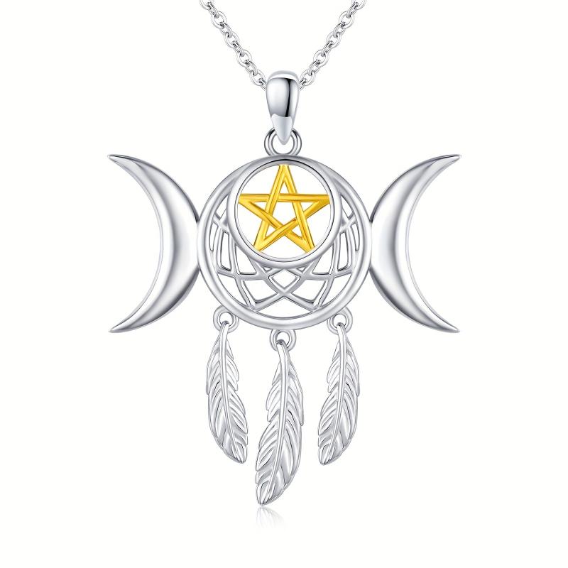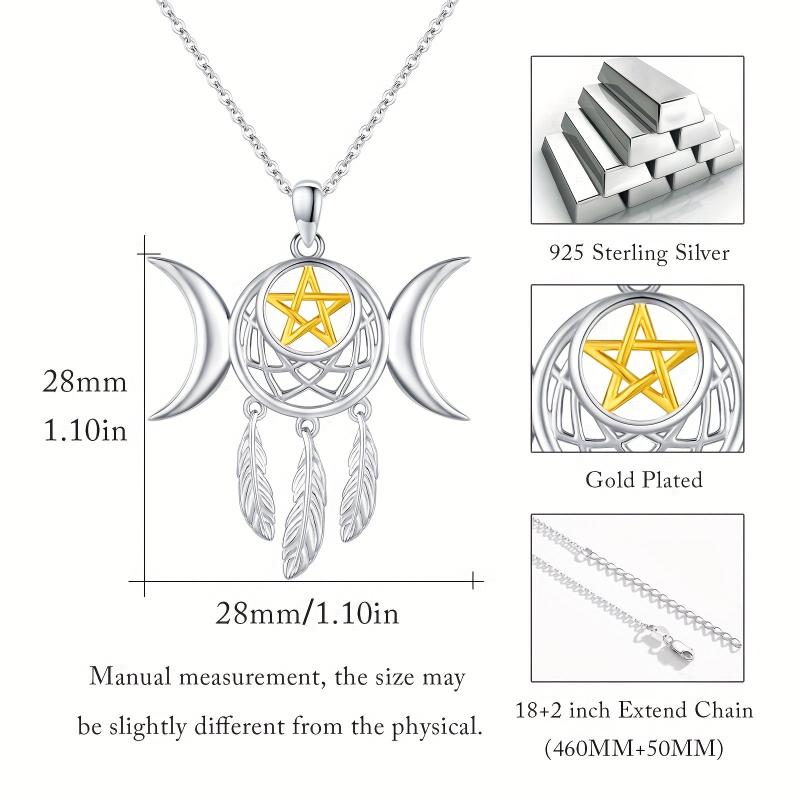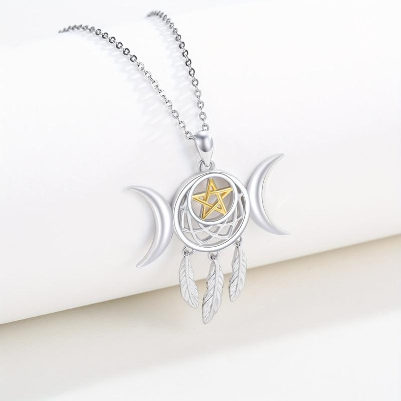 Beautiful sterling silver necklace featuring a triple moon goddess pendant, perfect gift for women, mothers, and daughters.