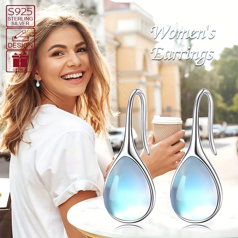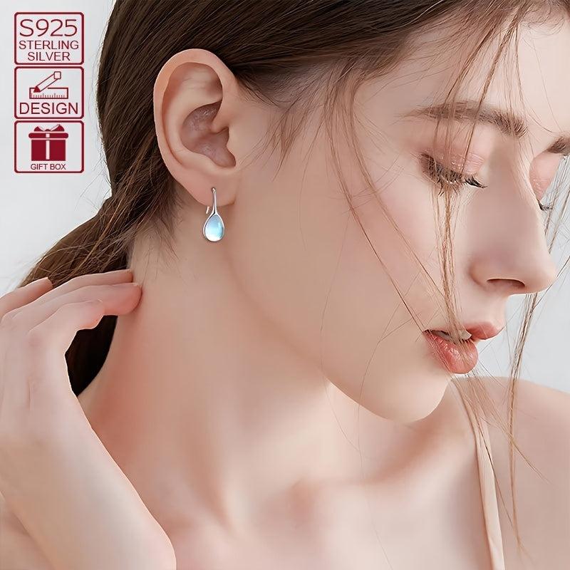 These S925 pure silver moonstone earrings are perfect for daily wear. The tear drop design adds an elegant touch, making them a great gift idea.