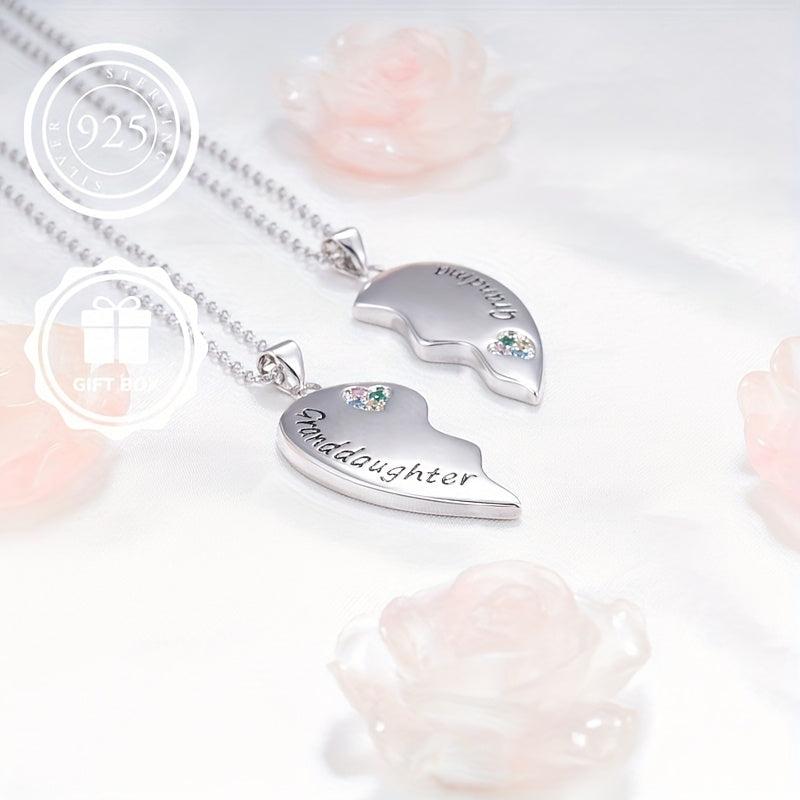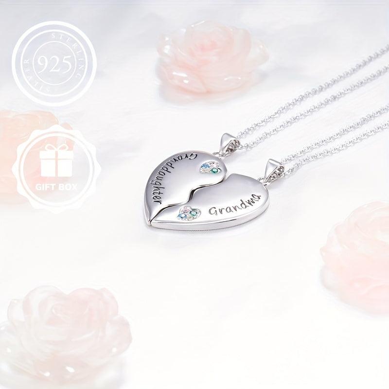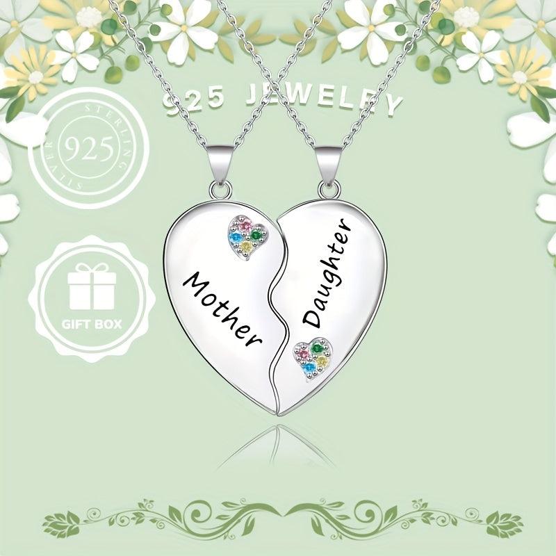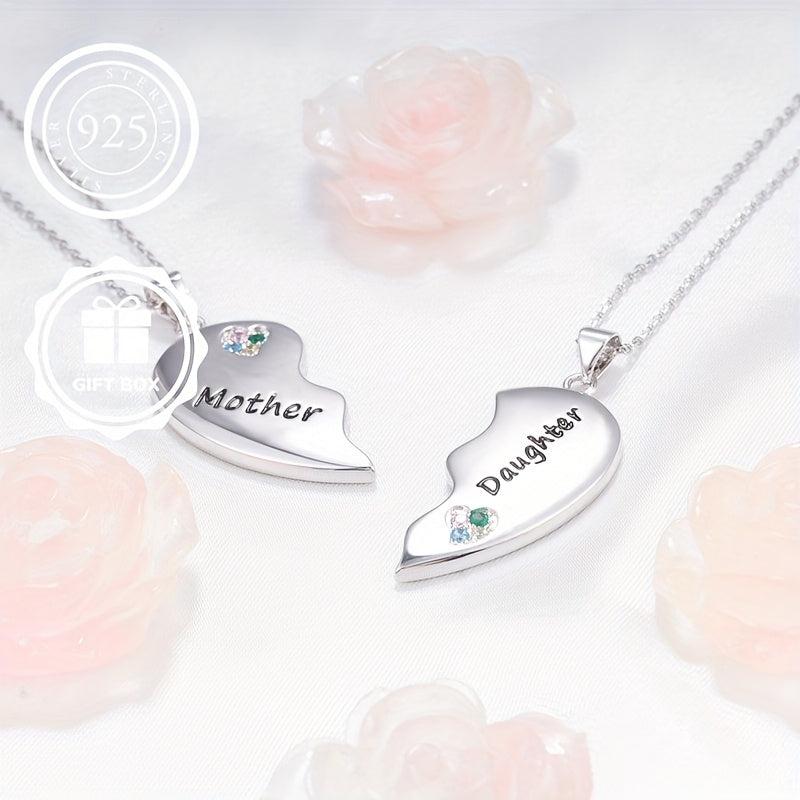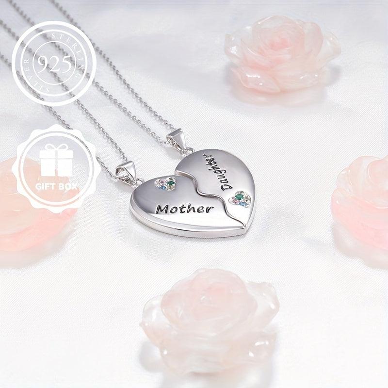 This S925 silvery necklace set features a double splicing design with a peach heart pendant, symbolizing the bond between a mother and daughter. Show your affection with this fashionable and gentle family accessory.