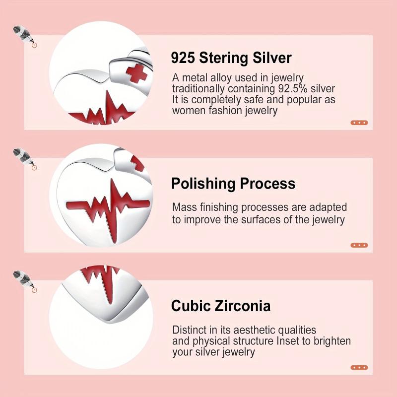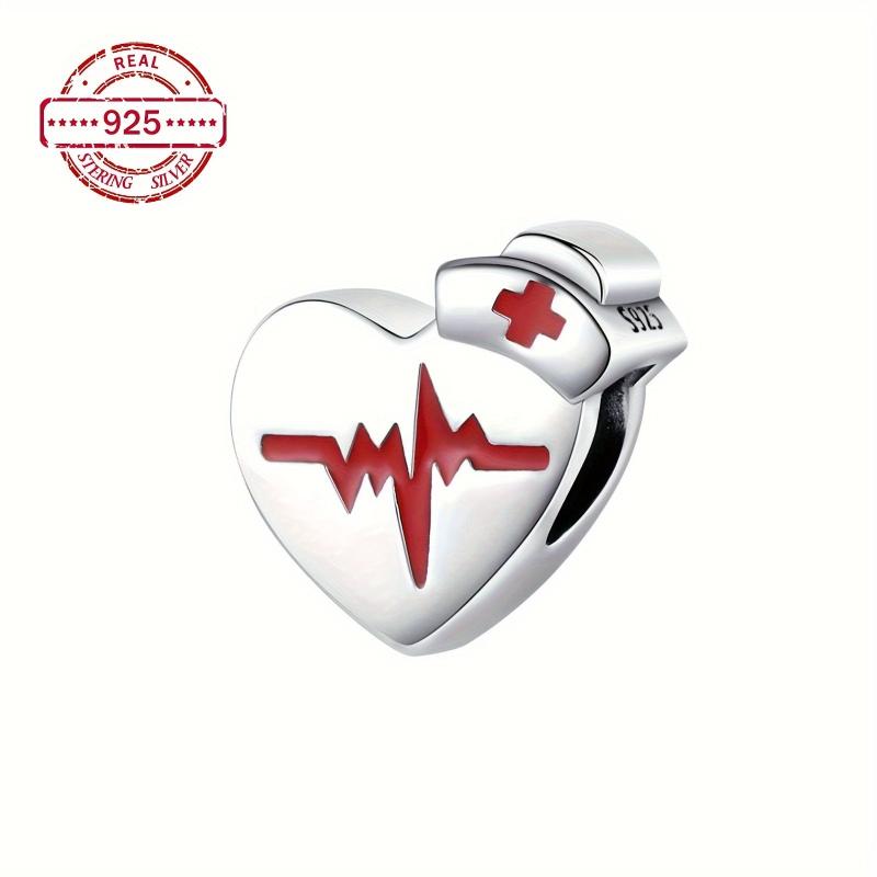 This S925 sterling silver charm pendant is a perfect gift for nurses. It fits European moment bracelets and necklaces, ideal for DIY jewellery making.