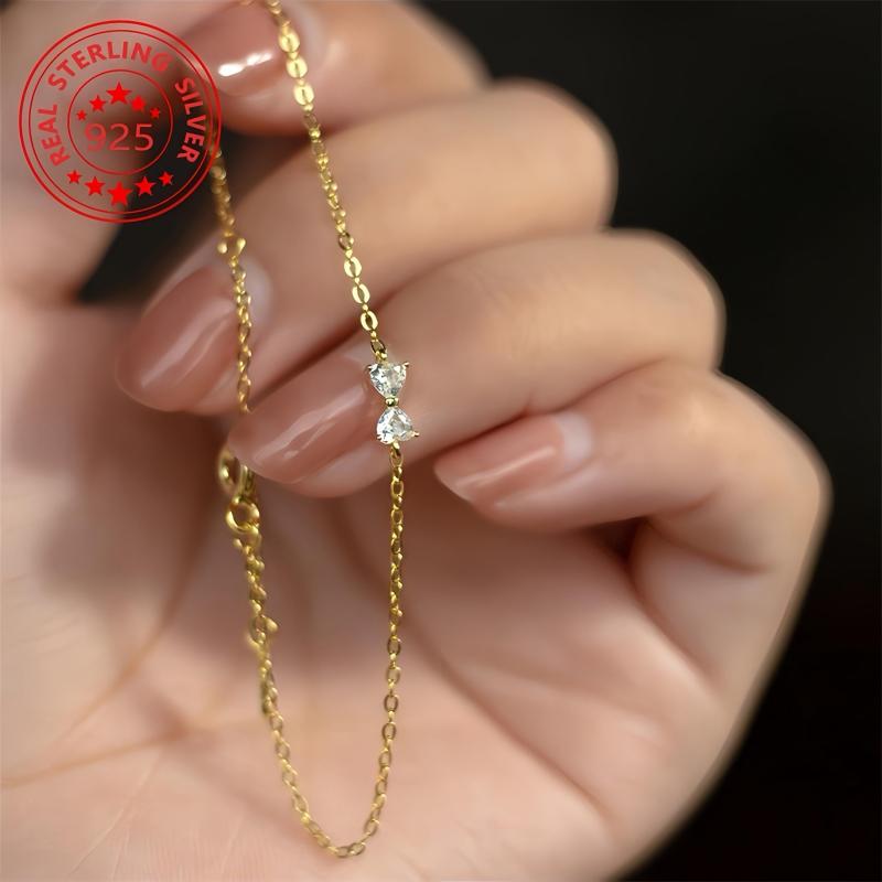 This stunning bracelet is a perfect daily wear accessory crafted from S925 pure silver with synthetic zirconia. It weighs only 0.7g, making it lightweight and comfortable to wear.
