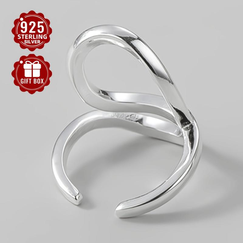 This stylish wide face ring is made of S925 pure silver, featuring a neutral line design. It is adjustable to fit different sizes and is suitable for everyday wear.