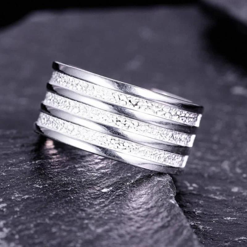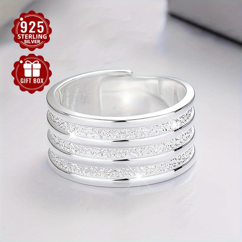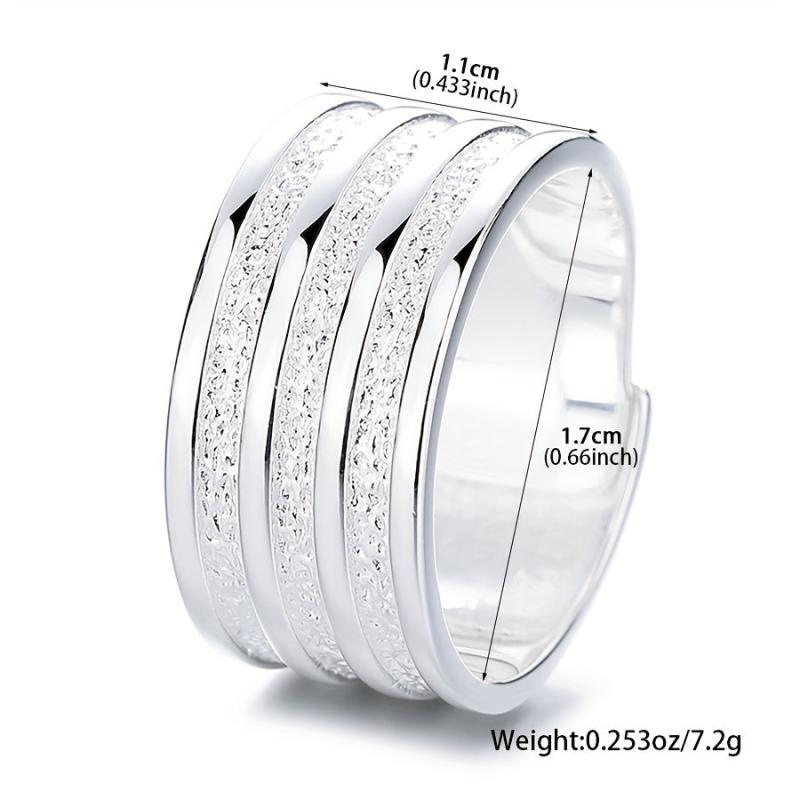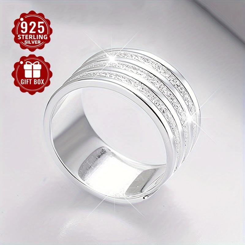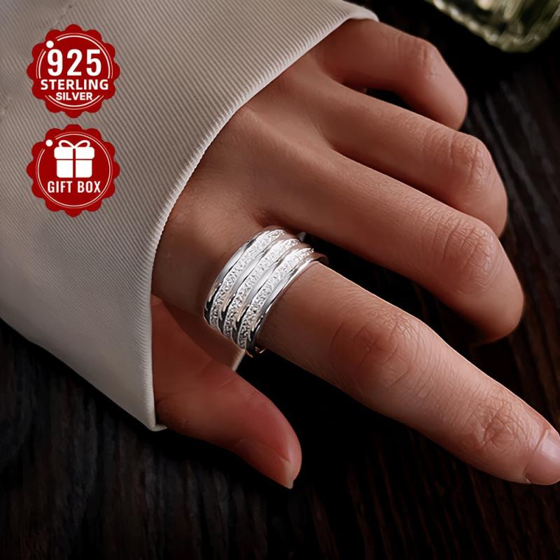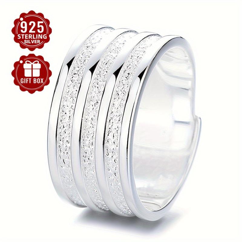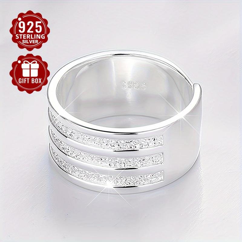 This unisex couple's ring is made of S925 pure silver, low allergy and lightweight. It features a fashionable wide face with a matte stripe design, perfect for anniversary gift.