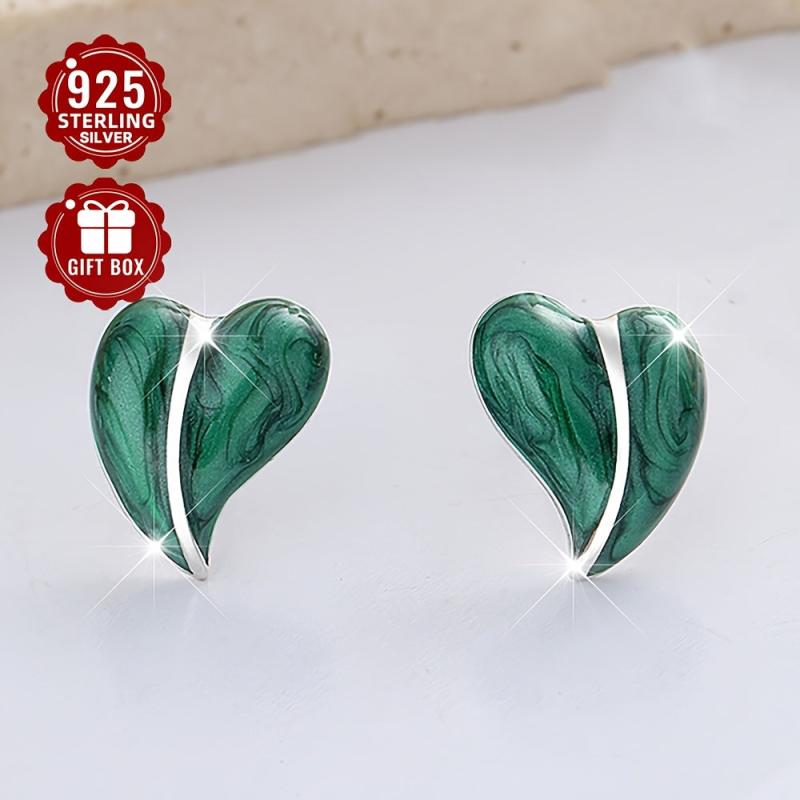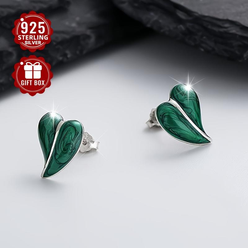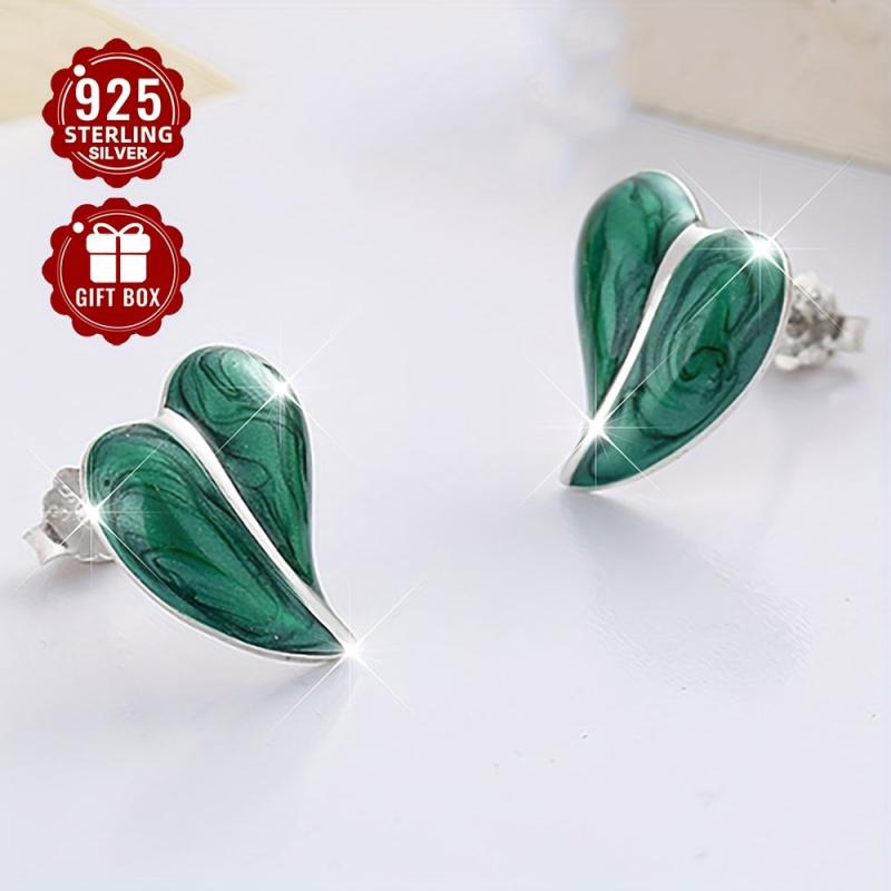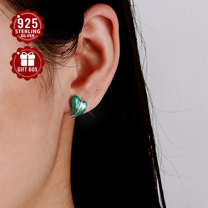 S925 Retro Creative Style Drip Love Green Gradient Earrings for Women