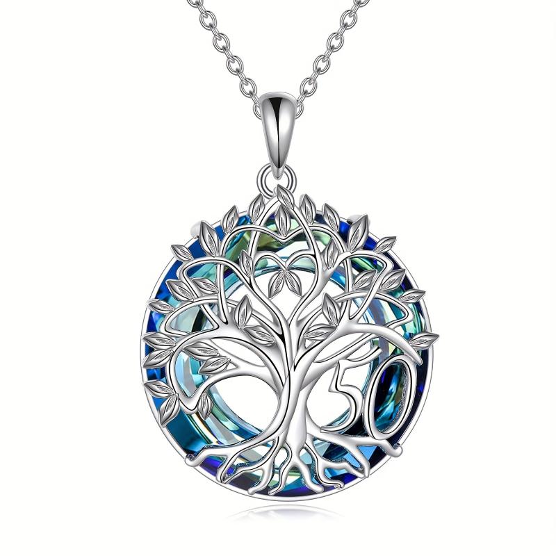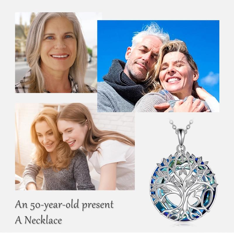 Celebrate 50th anniversary with this stunning crystal necklace for mom. Elegant and timeless design.