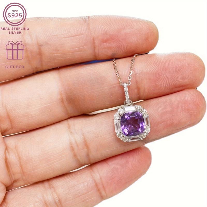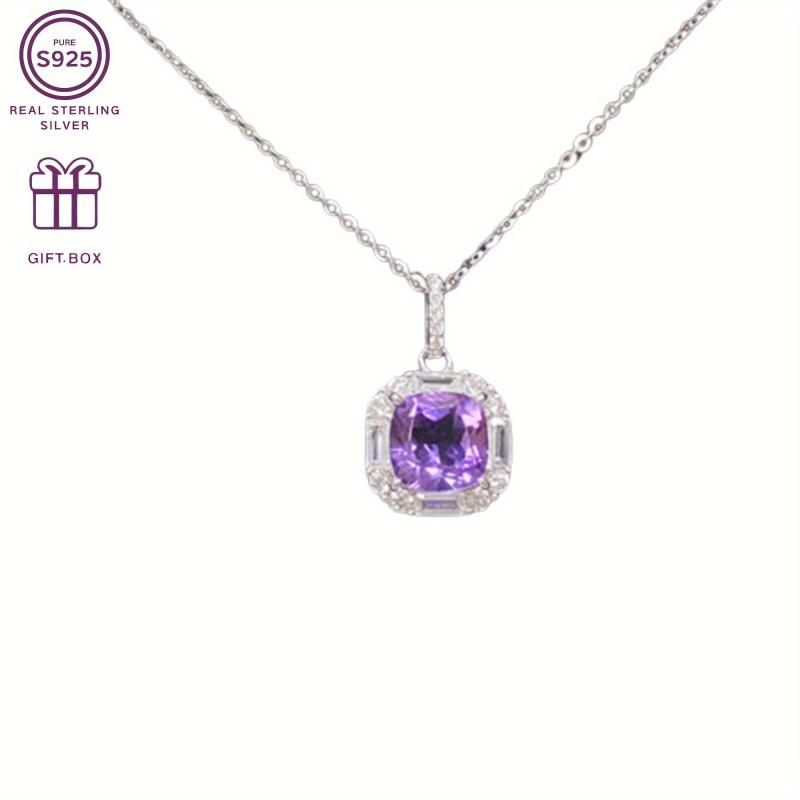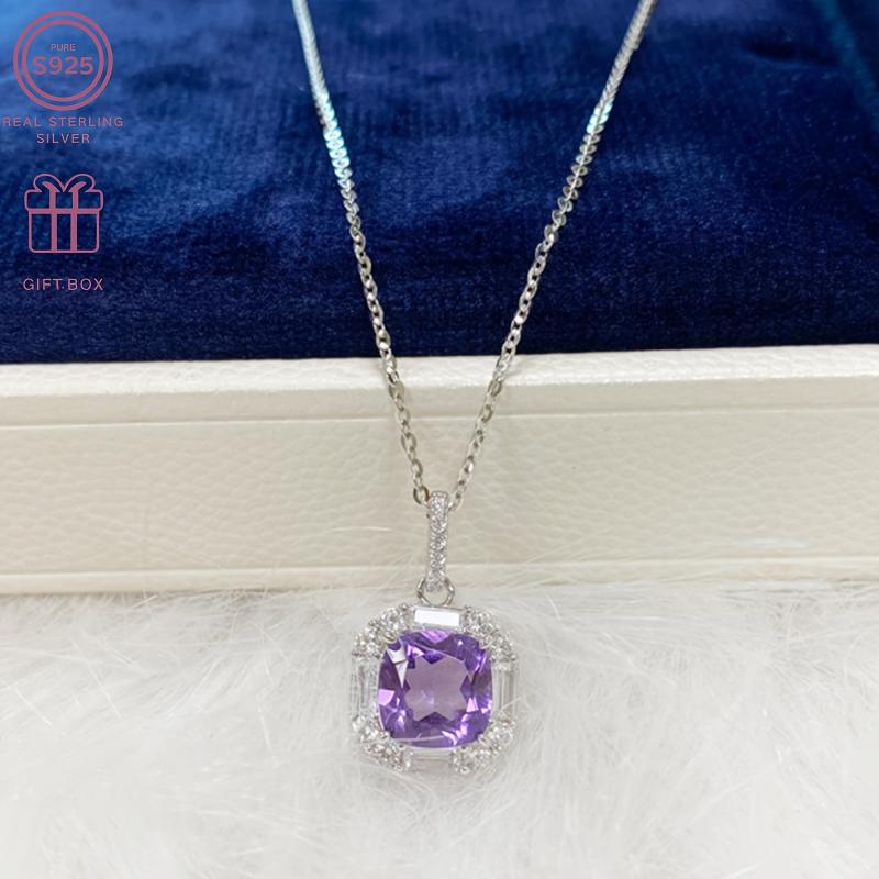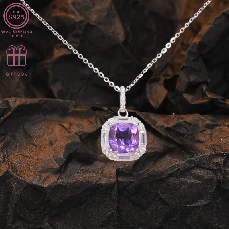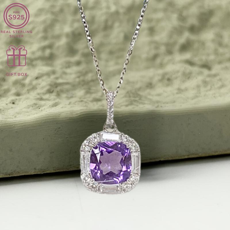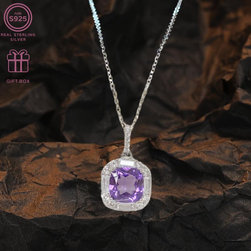 This exquisite necklace features a square amethyst pendant on a delicate S925 silver chain. Perfect for everyday wear or to add a touch of elegance to festive occasions. Weighs 3.0g.