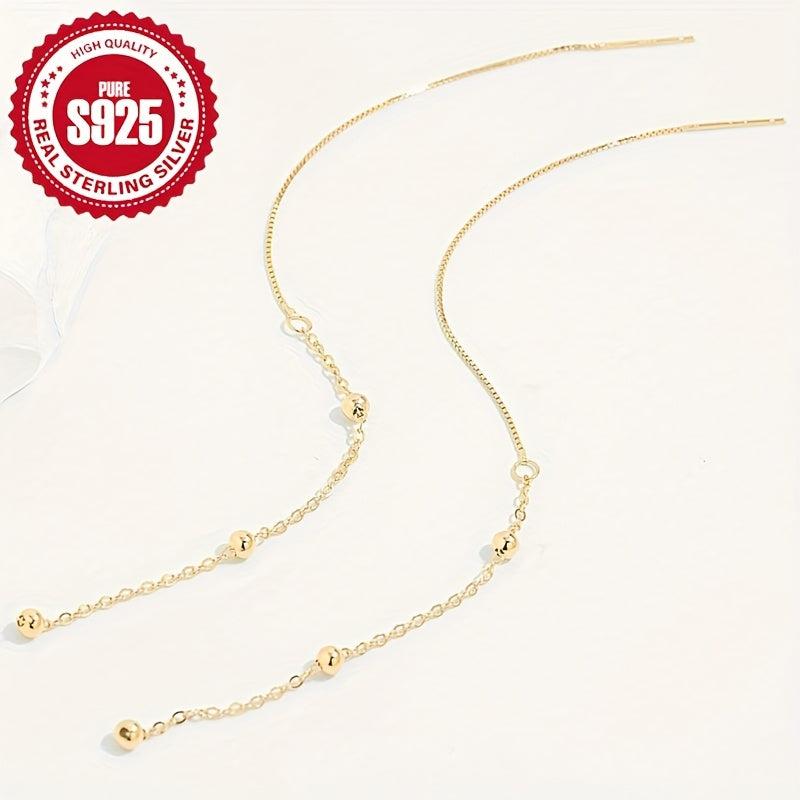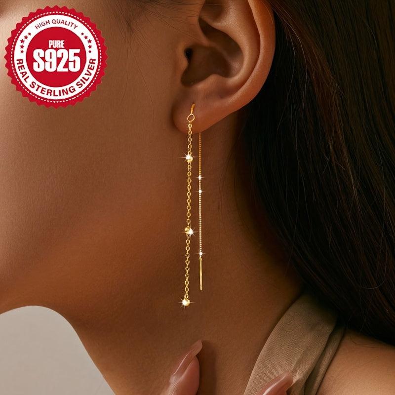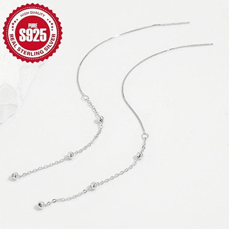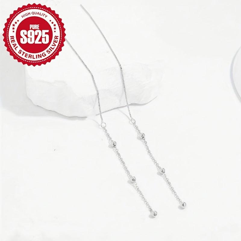 These minimalist earrings feature a personalized beaded tassel pendant design. Made of S925 silver, they are lightweight and hypoallergenic.