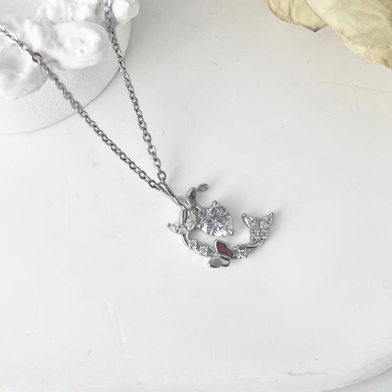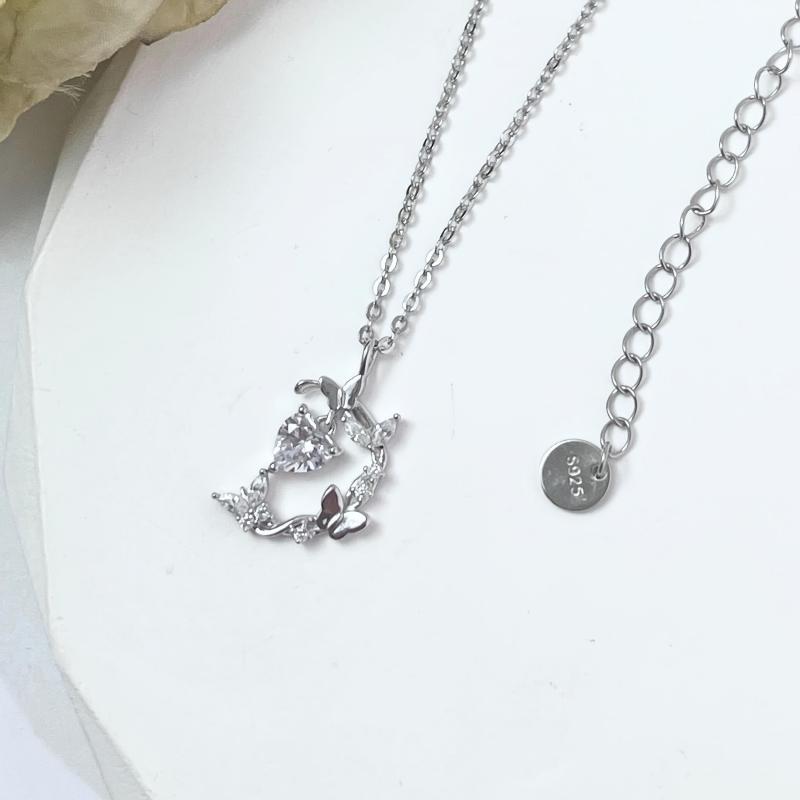 S925 Silver Butterfly Moon Pendant Necklace 2 8g
