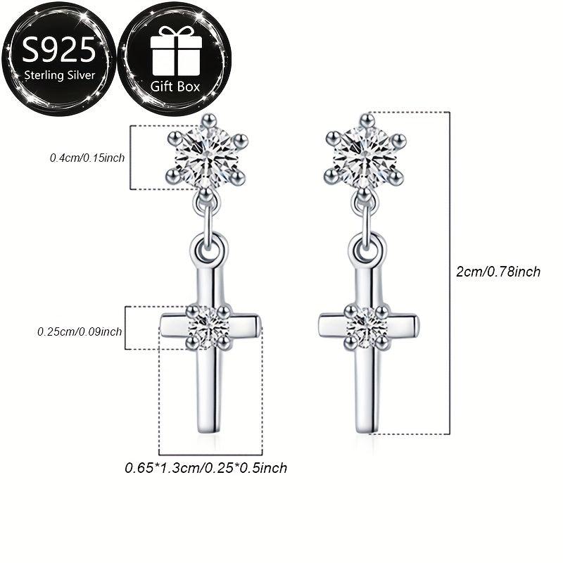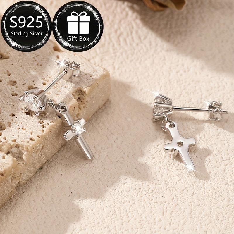 Stylish S925 silver earrings with retro cross design and inlaid Synthetic Zirconia, hypoallergenic for daily wear or parties.