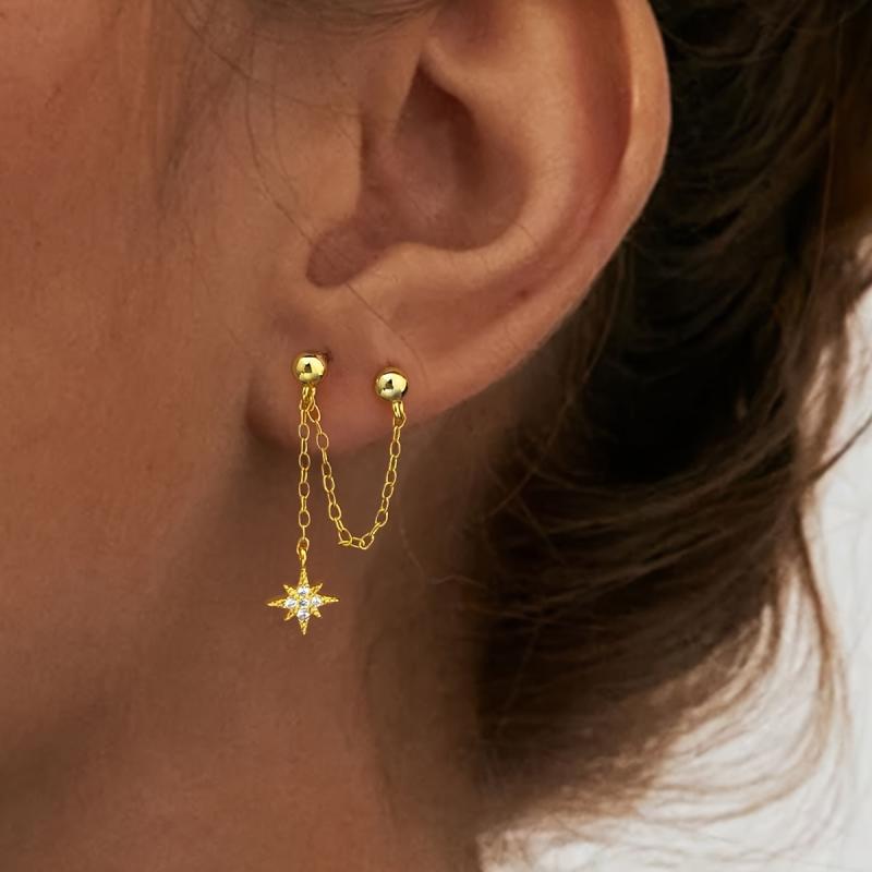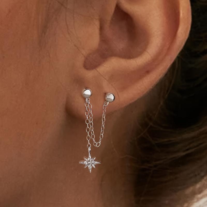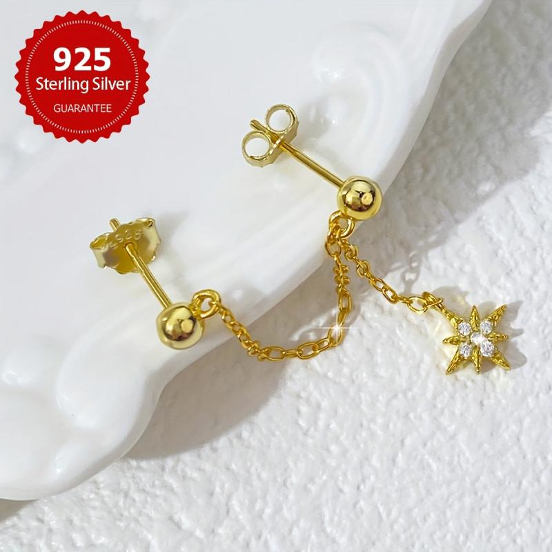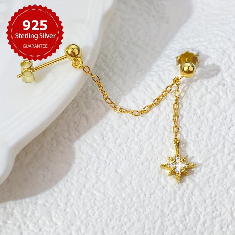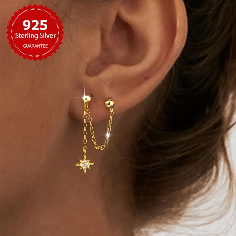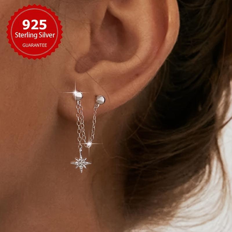 These elegant earrings feature a single chain design with double wearing options. Made of pure S925 silver, they are lightweight and stylish, weighing only 0.76 grams. Perfect as a gift for any occasion.