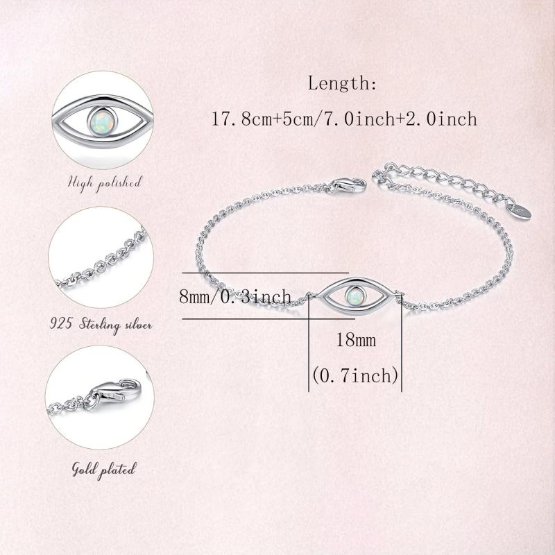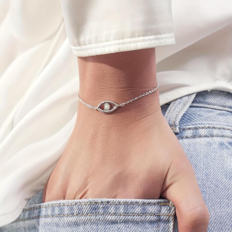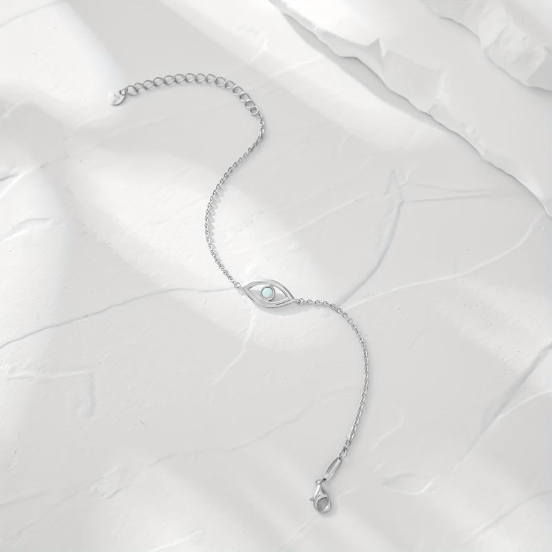 This minimalist evil eye bracelet features round Opal inlays on a hypoallergenic S925 silver chain. Perfect for daily wear, this delicate bracelet adds a touch of elegance to any outfit.