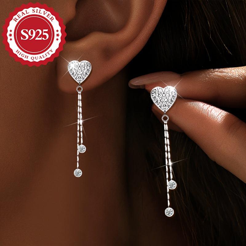 Elegant silver earrings with long tassels and matching studs. Perfect for music and daily wear. Ideal Christmas gift.