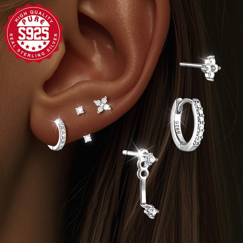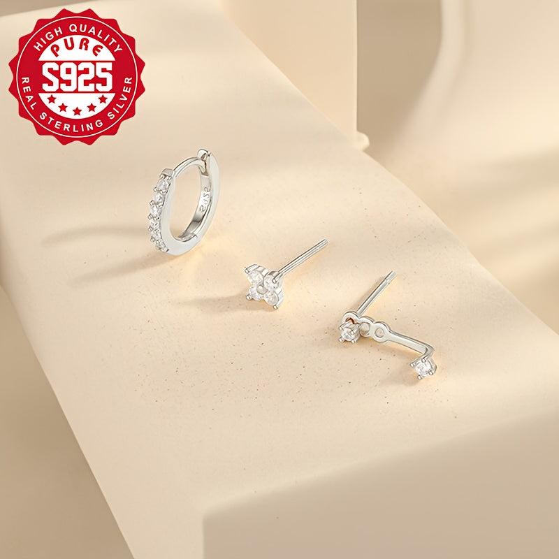 Elegant three-piece set of S925 silver earrings featuring sparkling synthetic Zirconia in a beautiful floral design. Perfect for women who love versatile and stylish jewelry.