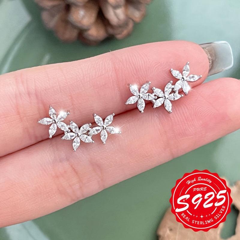 Adorn your ears with these elegant flower earrings. Made of pure silver, hypoallergenic and no piercing needed, perfect for daily wear, vacation, and Christmas.