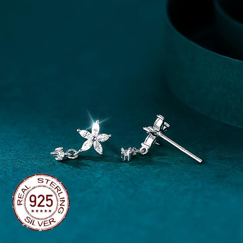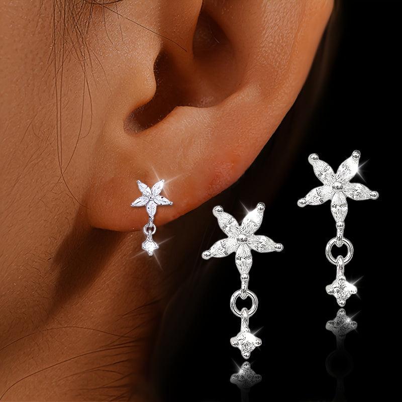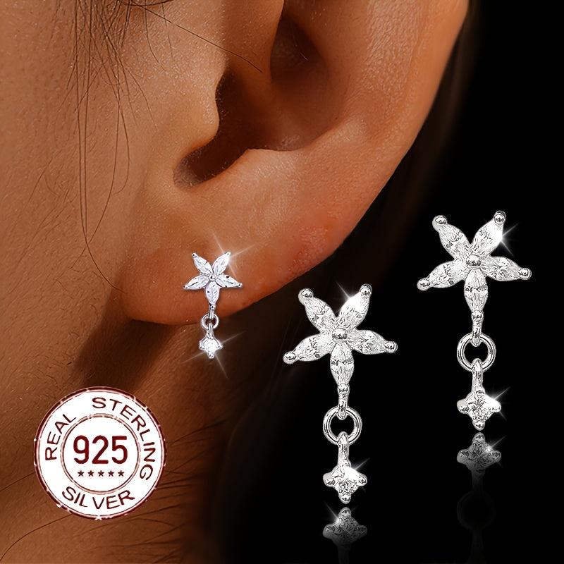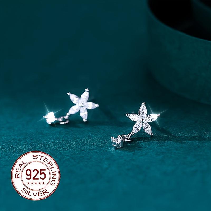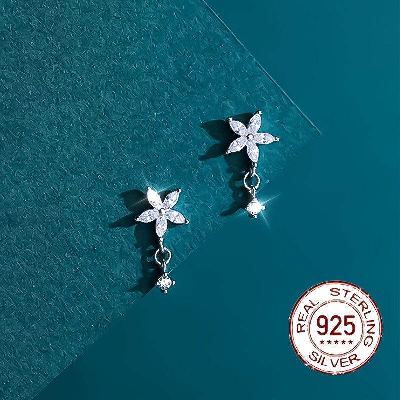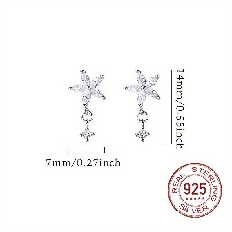 Elegant s925 pure silver earrings featuring zirconium flower petals. These stylish earrings are perfect for adding a touch of sophistication to any outfit.