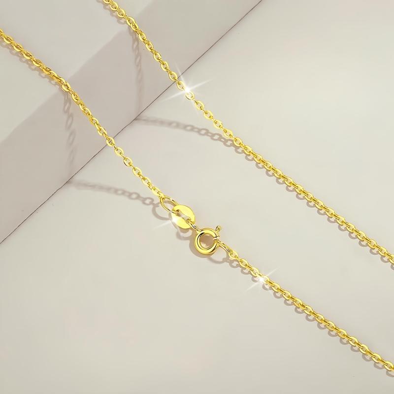 Timeless 925 silver chain with golden O-shaped links. Versatile and stylish, perfect for everyday wear.