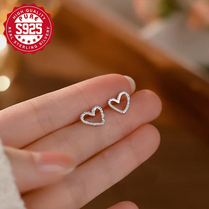These elegant S925 silver heart earrings feature a sparkling wave pattern, perfect for women to gift to family and friends. The earrings are hypoallergenic, weighing only 1.05g.