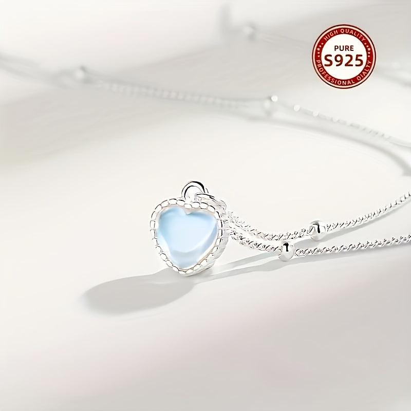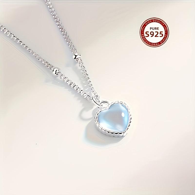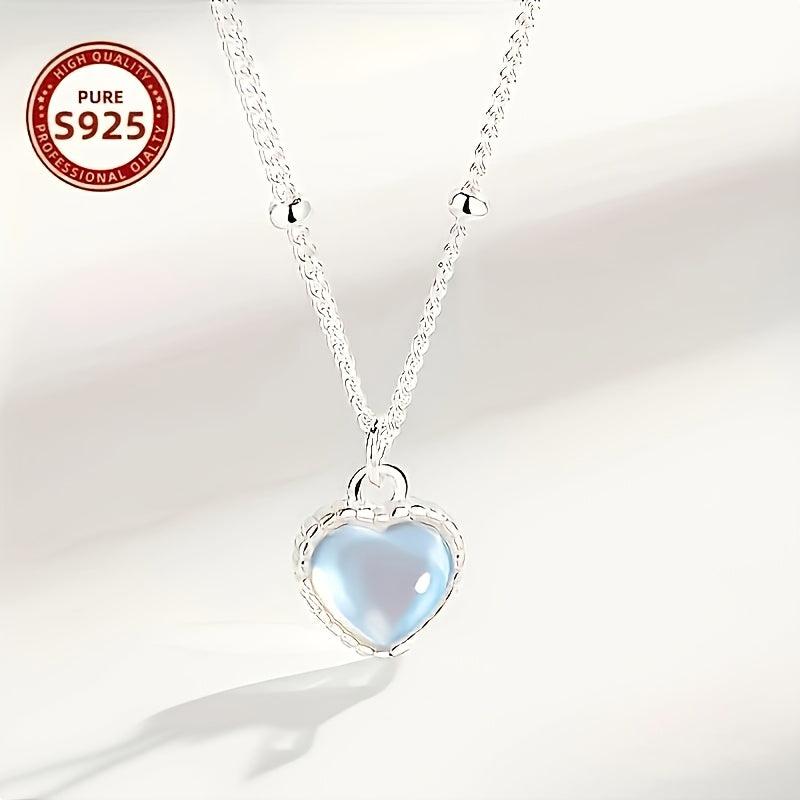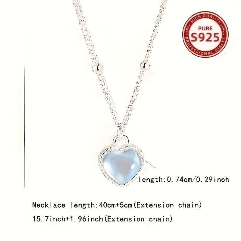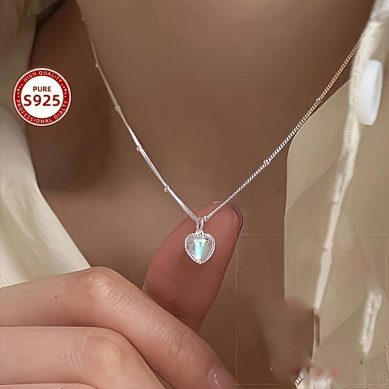 Elegant and minimalist heart-shaped pendant necklace crafted from S925 silver with a beautiful moonstone. A perfect piece of jewelry for daily wear or gifting on Valentine's Day.