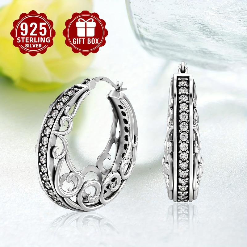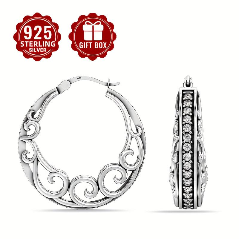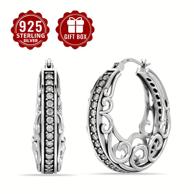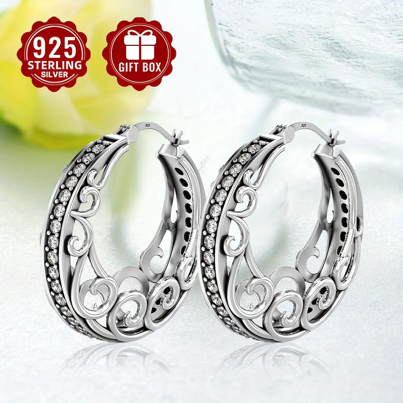 Elegant and vintage S925 silver earrings with synthetic zirconia for women. Perfect for casual wear and holiday occasions.