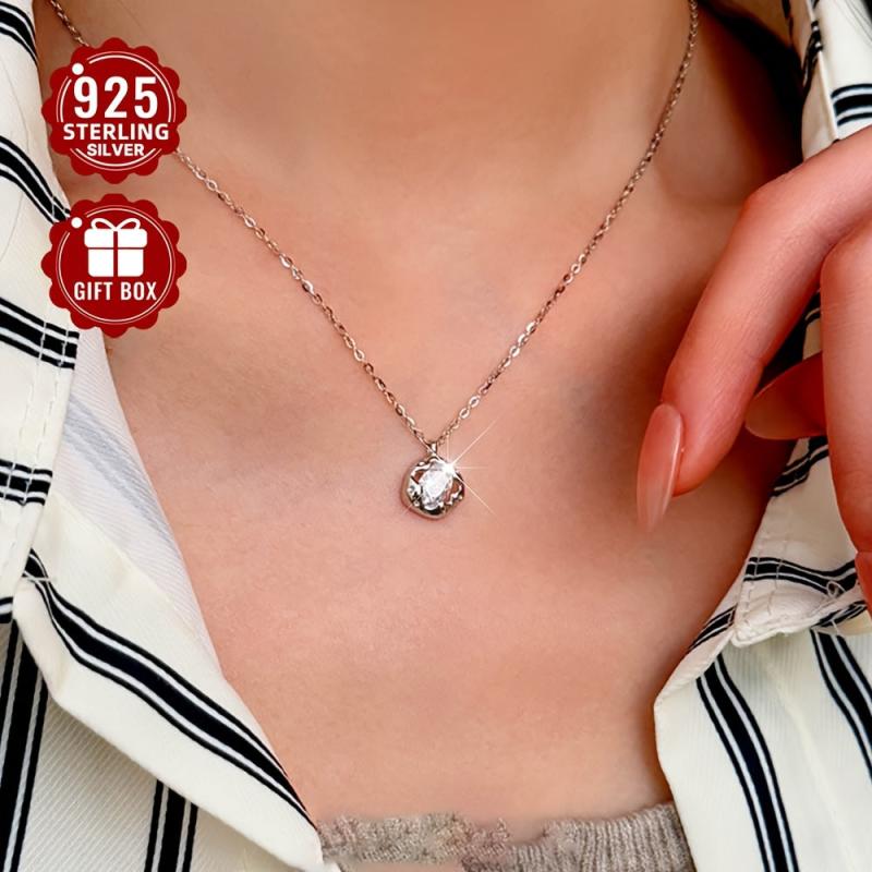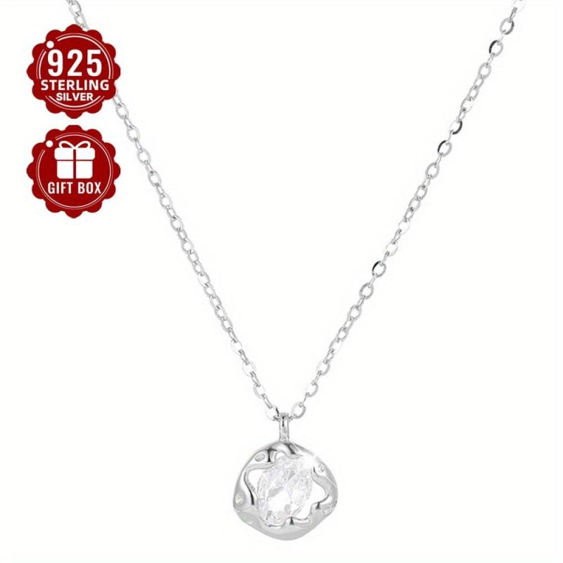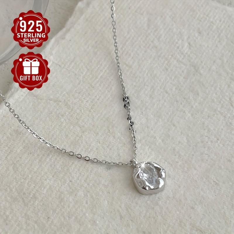 Add a touch of elegance to your outfit with this S925 silver irregular stone necklace. Perfect for any occasion, this clavicle chain adds a delicate charm to your look.