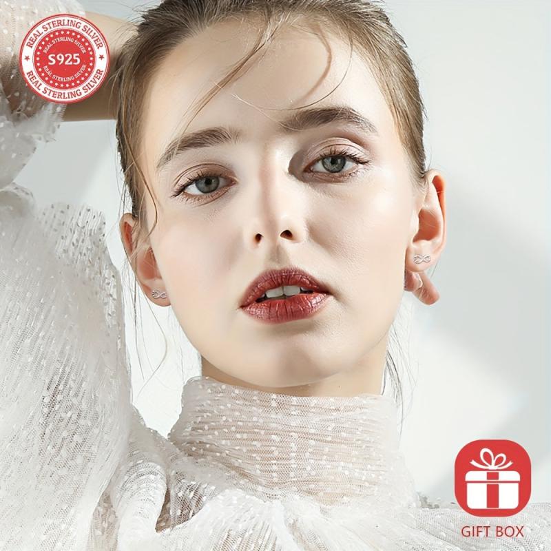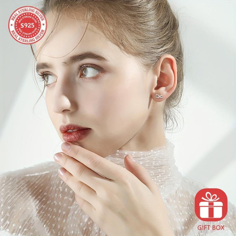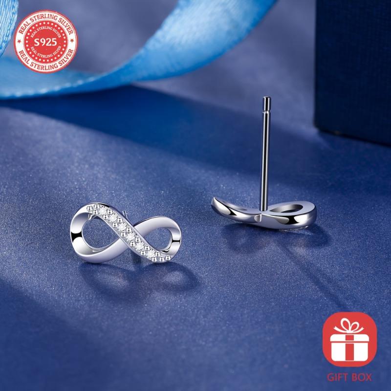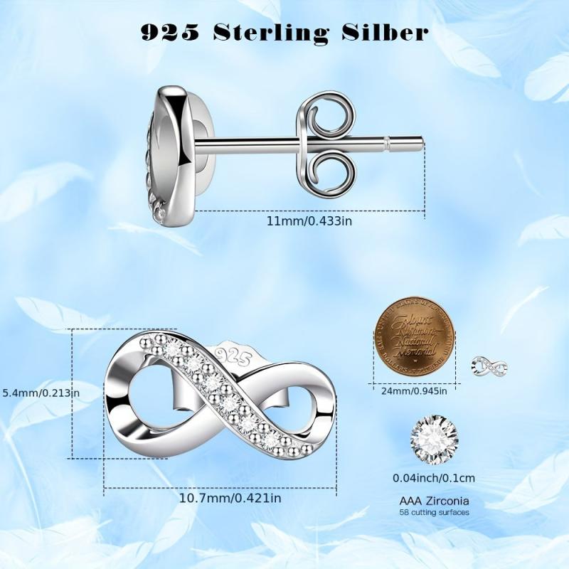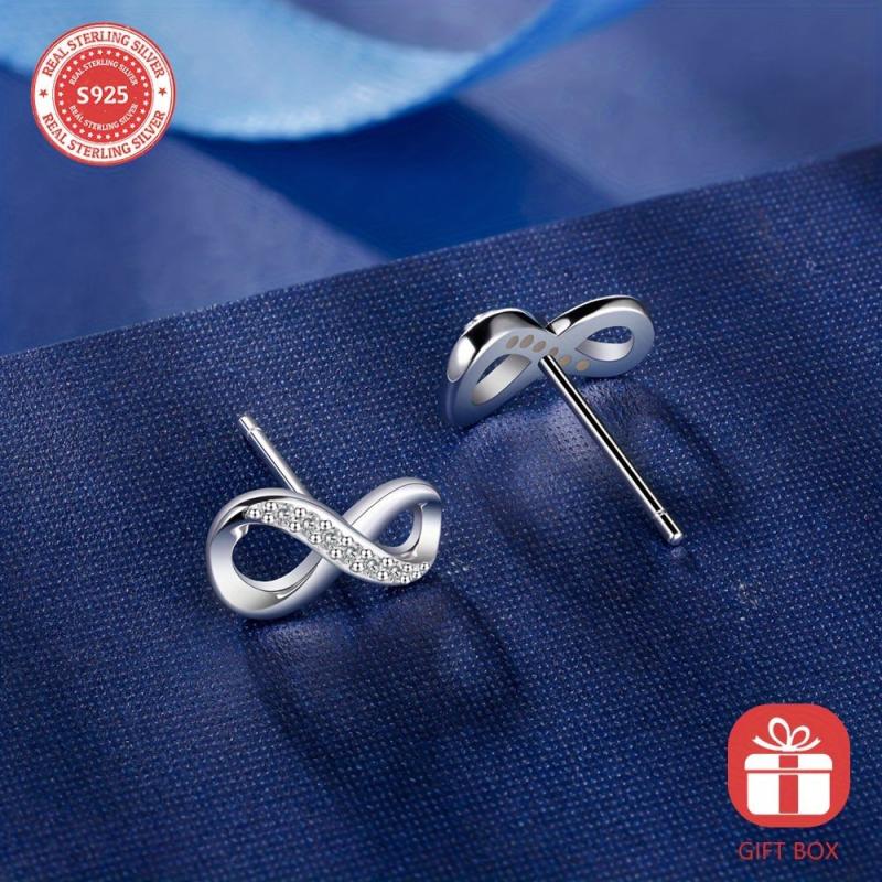 Celebrate love with these classic infinity stud earrings made of S925 silver. Perfect birthday gift for women and girls. Show your eternal love with these beautiful silver earrings.